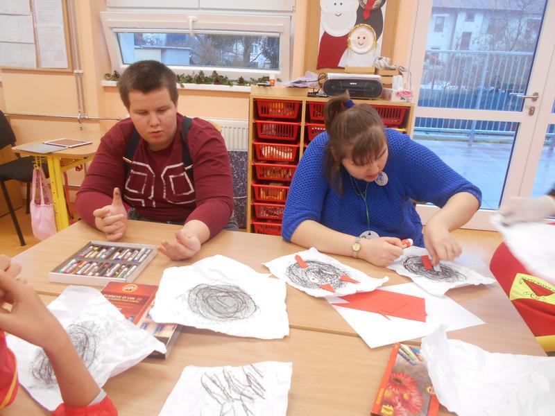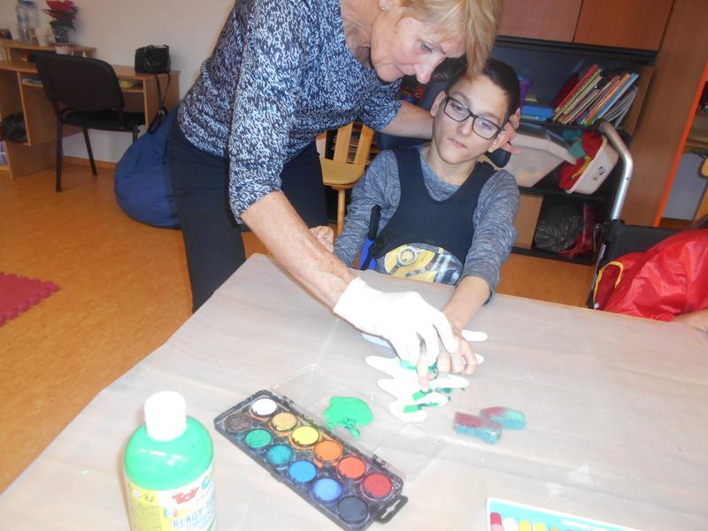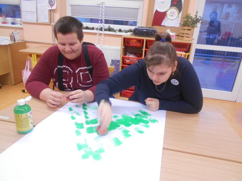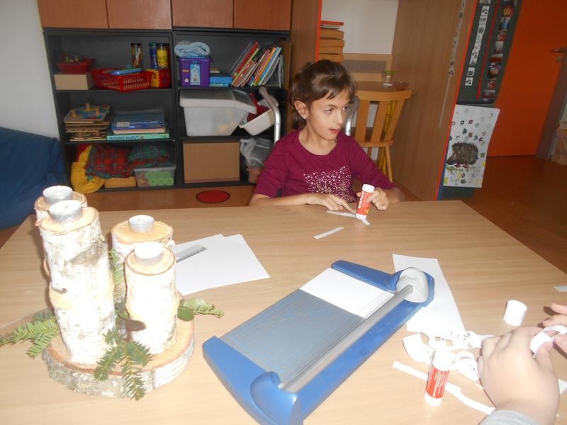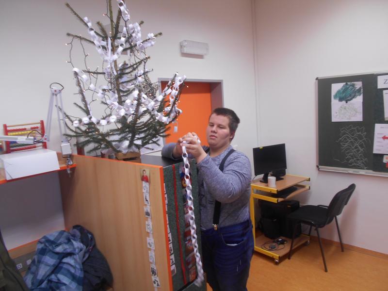 Žáci I. třídy si vyzdobili třídu papírovými čerty, společně udělali dlouhý papírový řetěz na vánoční stromeček a také namalovali papírový strom.