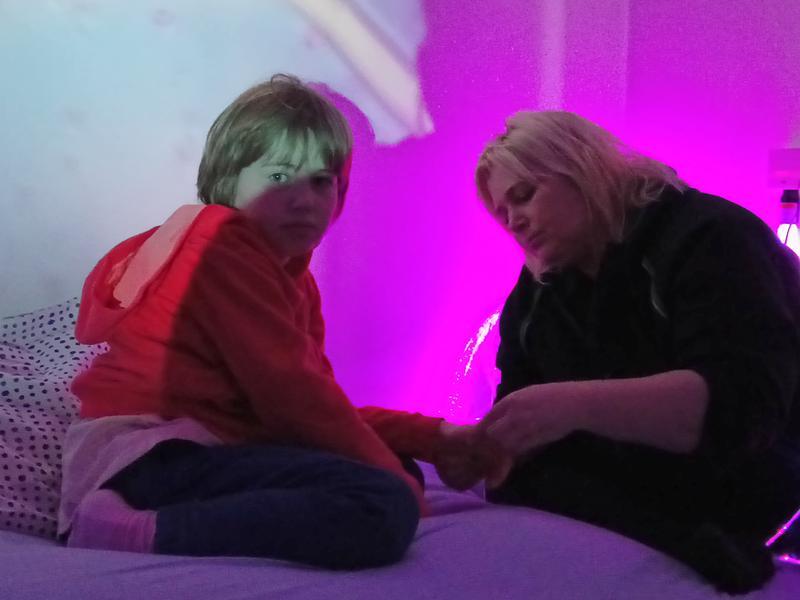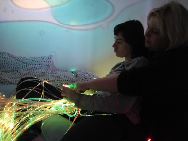 Také jsme vytvořili sněhuláka, proběhli se ve sněhu. K relaxaci jsme využili multismyslovou místnost snoezelen s vodní postelí a světelnou terapií.