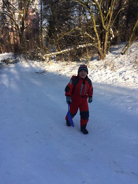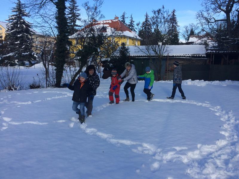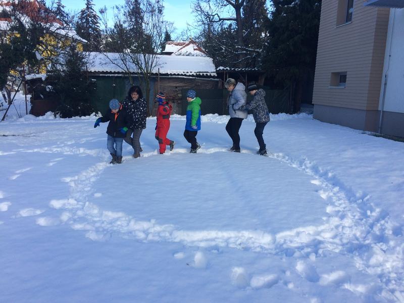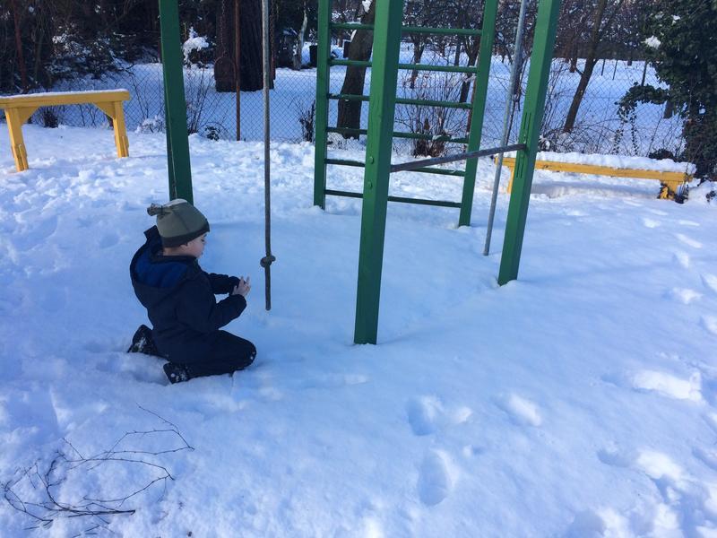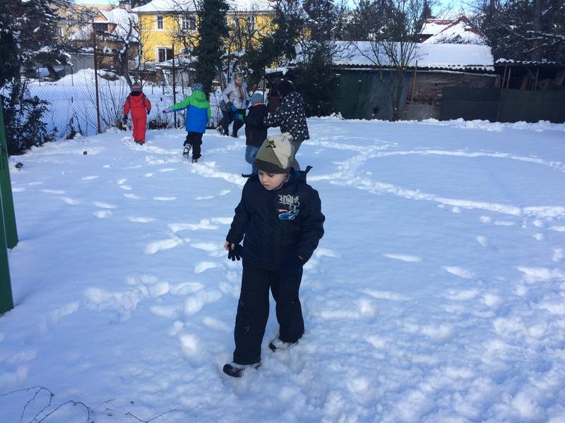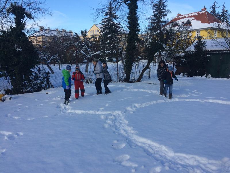 V pondělí nás příroda poněkud překvapila bohatou nadílkou sněhu. Hromadami krásného čerstvého sněhu! Slíbili jsme si, že toho hned další den využijeme a postavíme si sněhuláka. Jenže jak už to bývá, přes noc trochu přituhlo a sněhuláka postavit nešlo.
