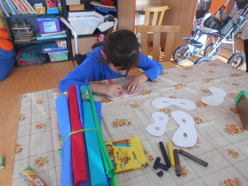 V rámci masopustních oslav jsme vyrobili masky na obličej. Ve sněhové pokrývce v okolí školy jsme poznávali různé stopy, které jsme poté výtvarně zpracovali.