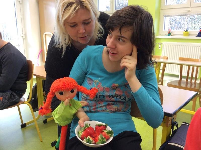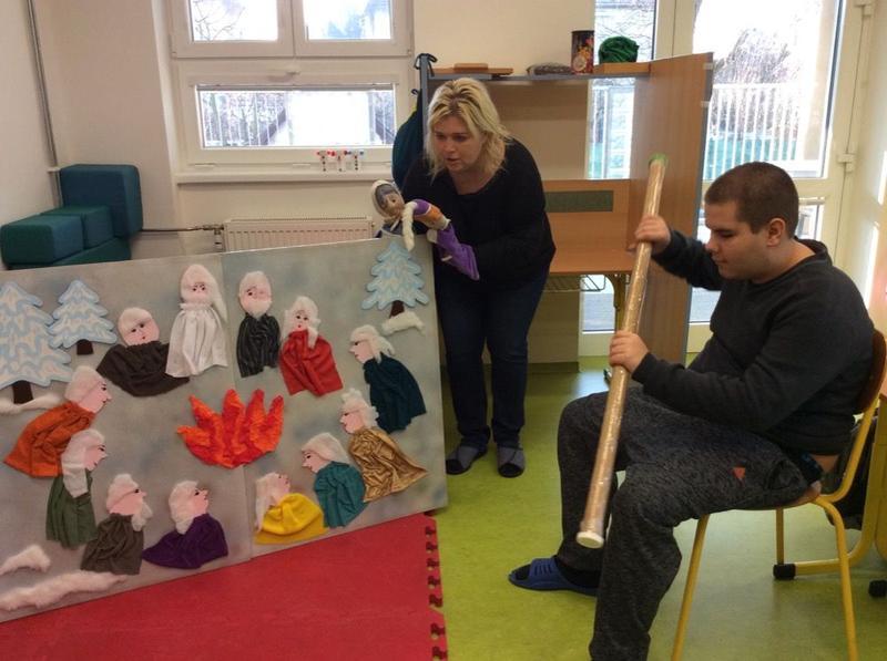Známou pohádku Boženy Němcové, ve které hodnou Marušku macecha a zlá sestra vyženou do zasněžených hor pro jahody, fialky a jablka, si zahrály děti formou maňáskového divadla. Ve třídě se nejen hrálo, ale také ochutnávalo – Maruška přinesla od svých pomocníků měsíčků nejen pěkná jablíčka, ale také sladké jahody.