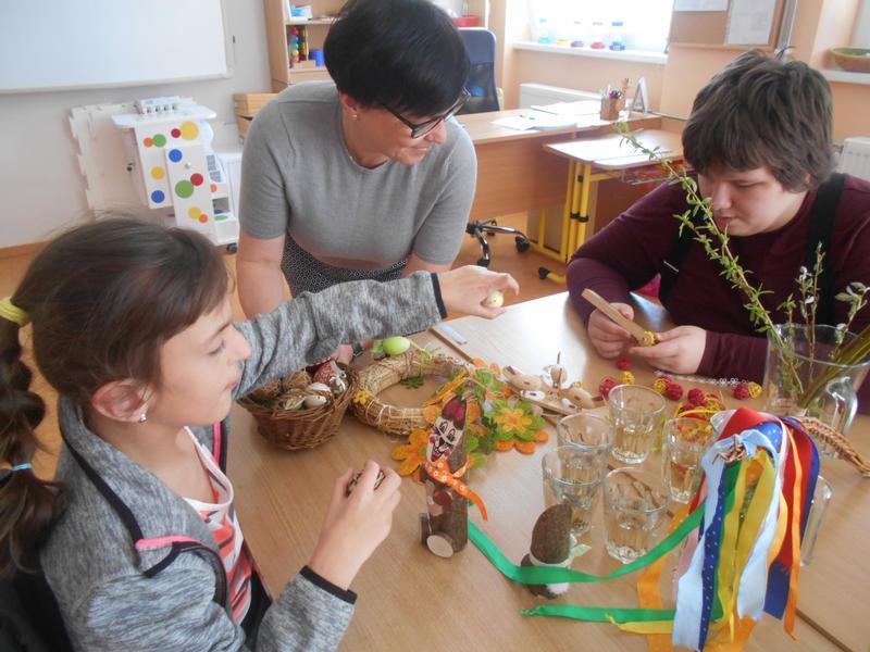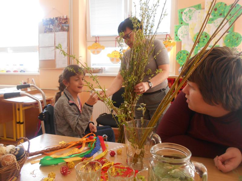 Posezení u beránka, pití kopřivového čaje, zdobení věnečku, pletení pomlázky, zvyky a tradice k svátku jara přispěli k příjemné atmosféře dopolední výuky v I. třídě.