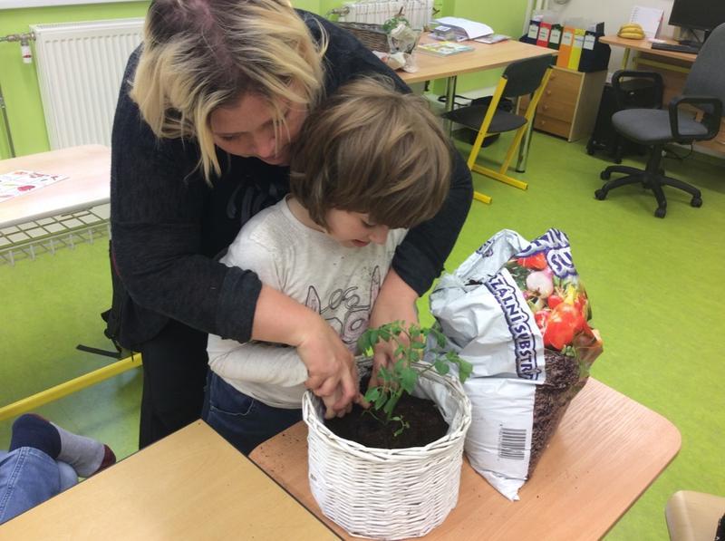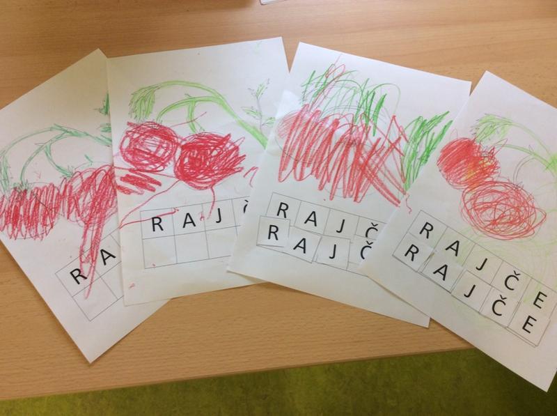 Děti také zhlédly řadu obrázků květin, zeleniny a ovoce, vymalovaly obrázek rajčete. Sazenice zeleniny zkrášlily naše okenní římsy.
