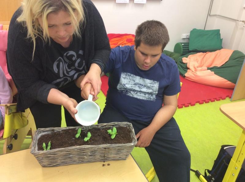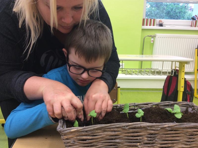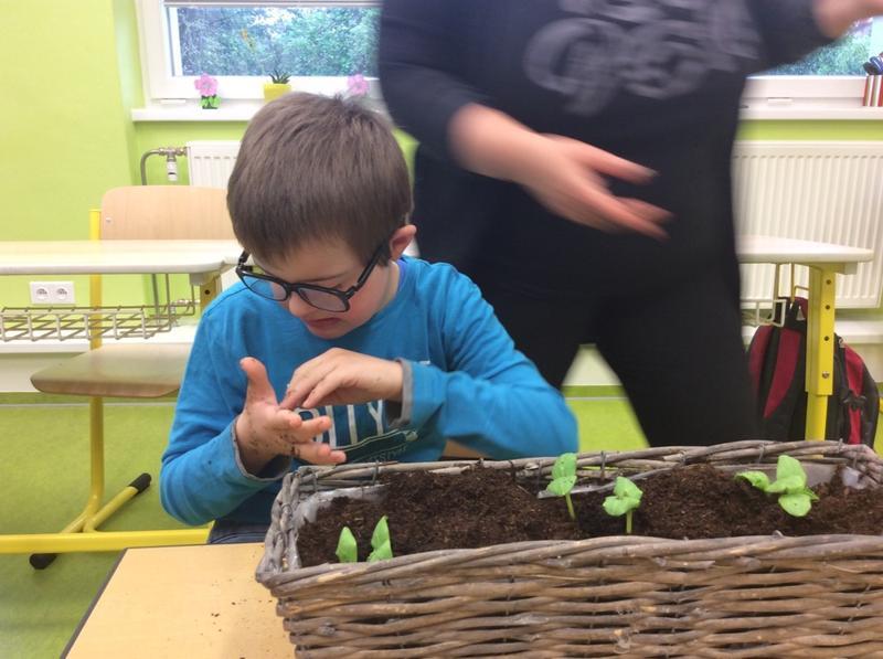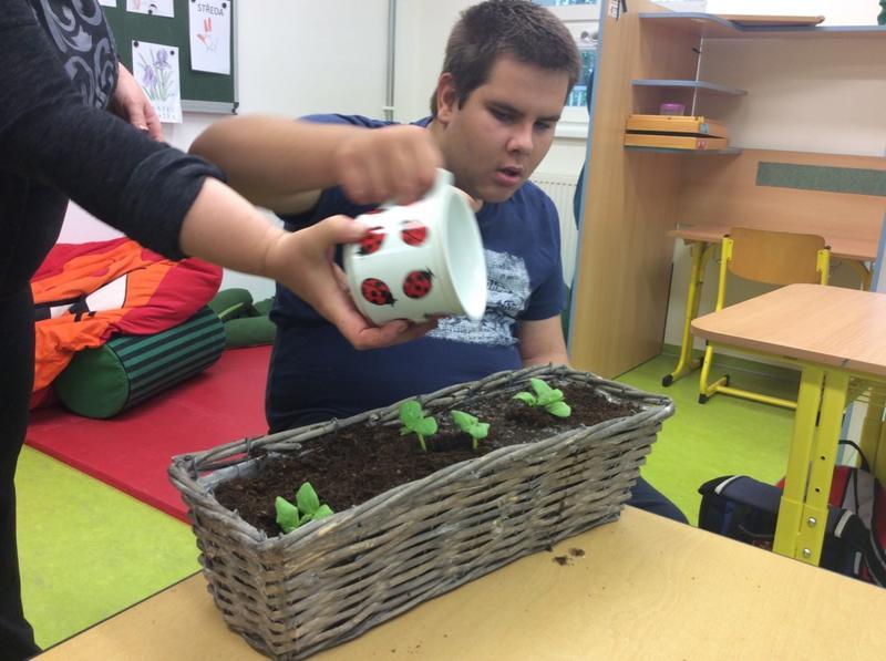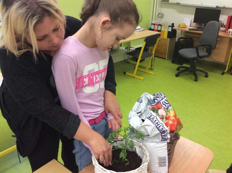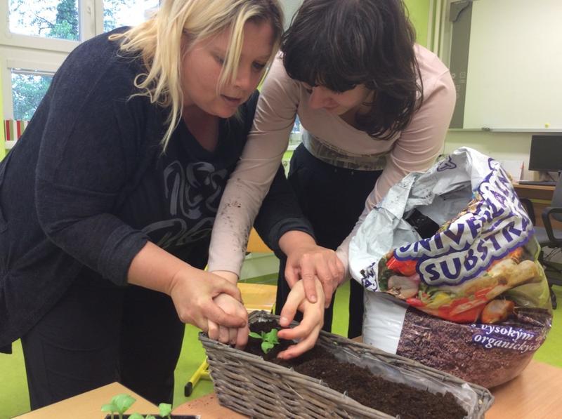 Tentokrát jsme si v pracovním vyučování vyzkoušeli opravdové zahradničení. Podařilo se nám postupně zasadit malé sazeničky okurek, rajčat i voňavých bylinek. Vyprávěli jsme si o zahradníkovi, na obrázcích prohlédli předměty, se kterými se opravdu pracuje.