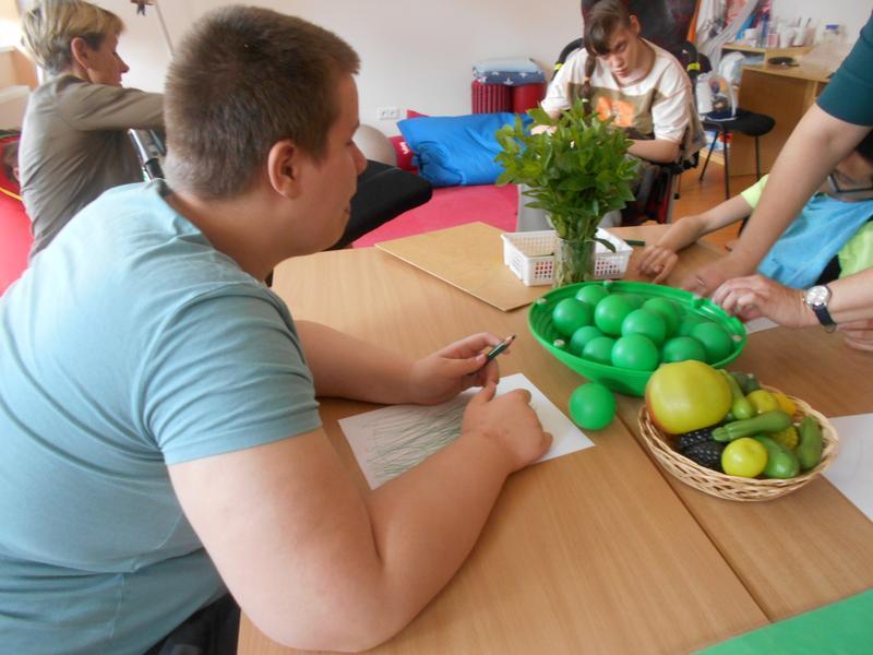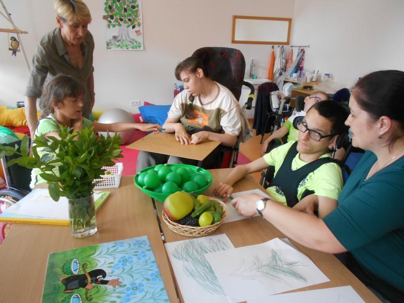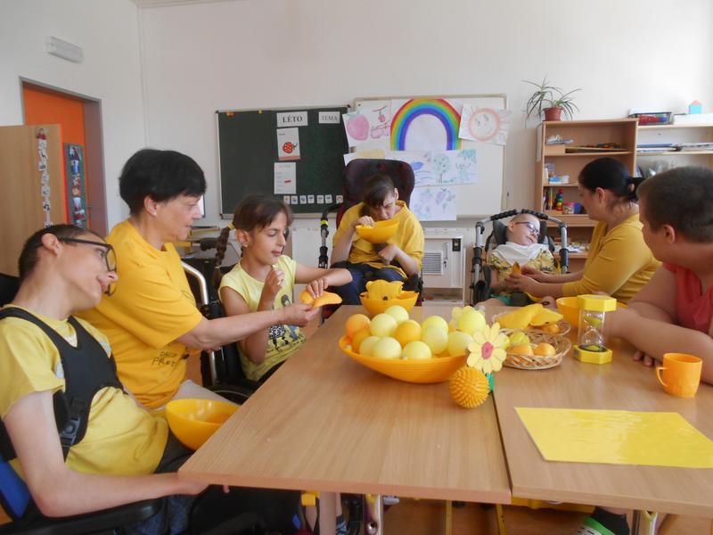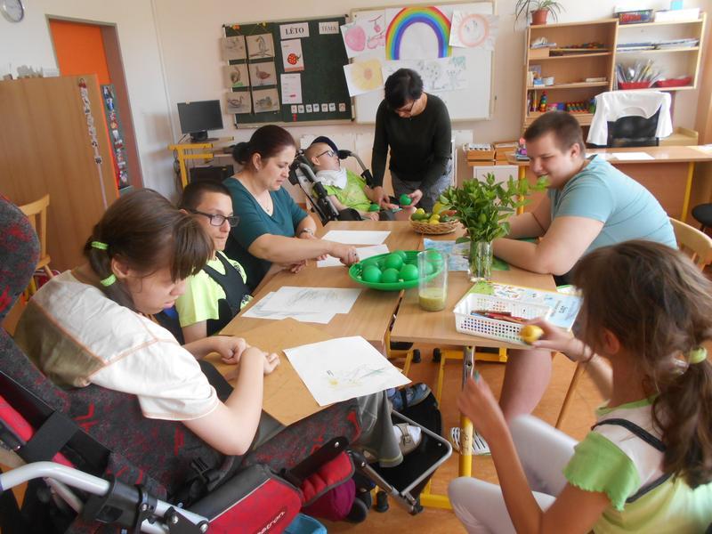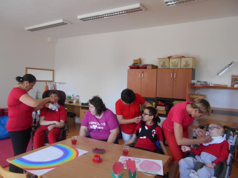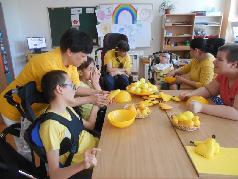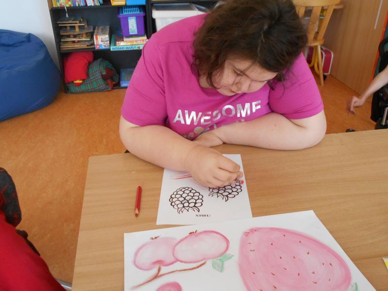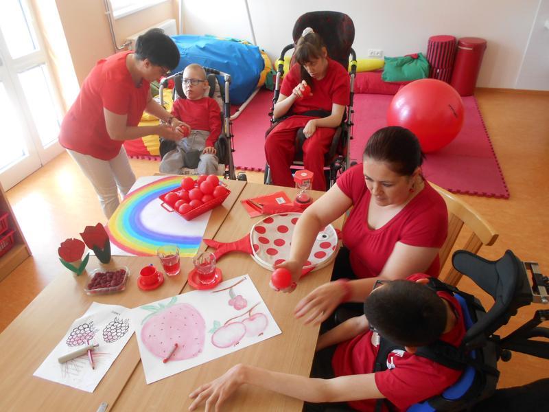 Ranní zpívání jsme zahájili písněmi o barvách. Během dopoledne jsme si vyrobili smoothie, dobroty z ovoce, některé barvy jsme výtvarně zpracovali, cvičili na gymnastických míčích, prováděli vodní terapii, vyráběli lodičky z papíru a využili i školní zahradu.