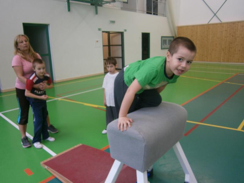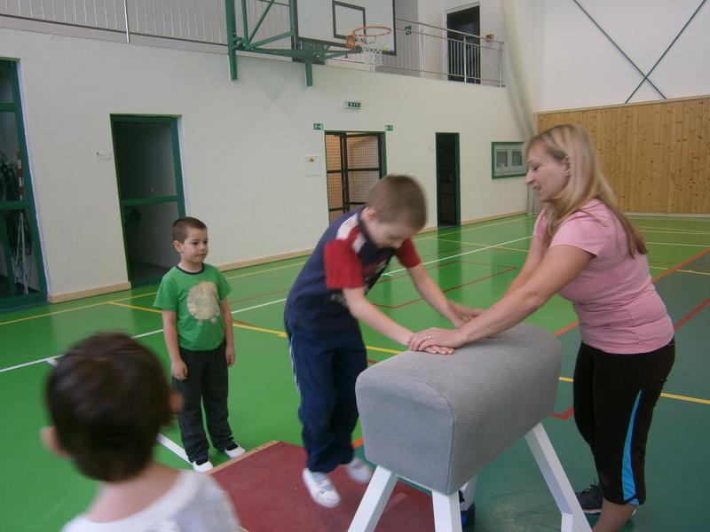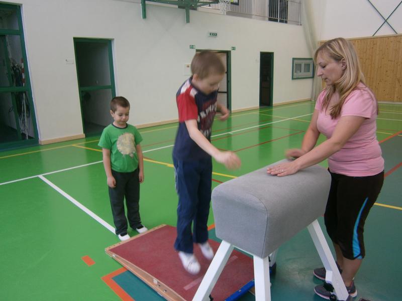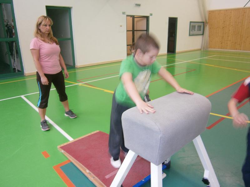 Trénujeme kotoul a skok přes kozu. Už jen správně se odrazit je pořádná práce. Ale nevzdáme to ...