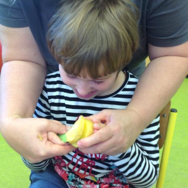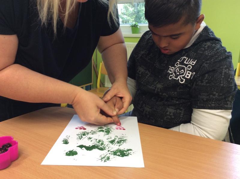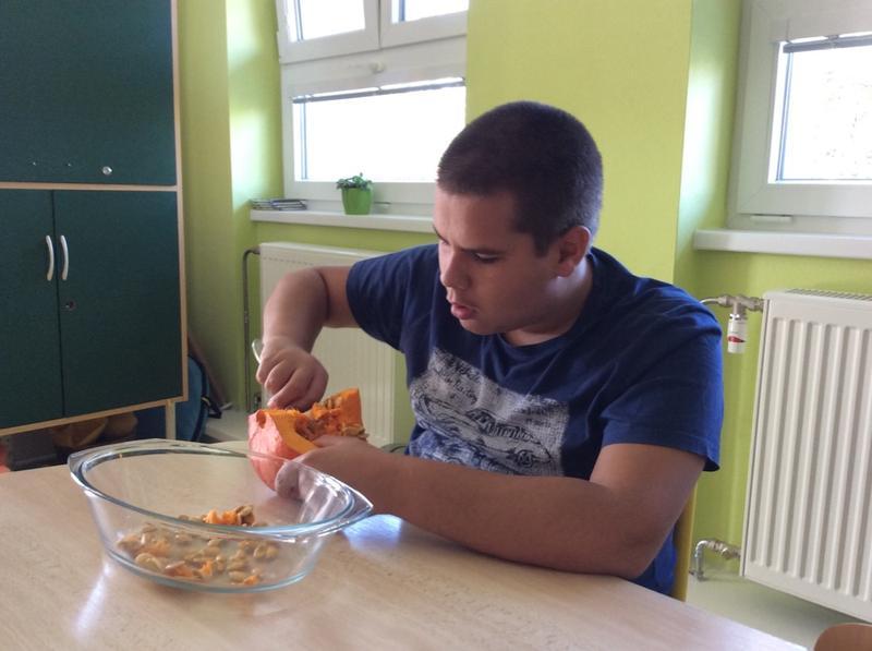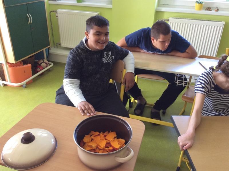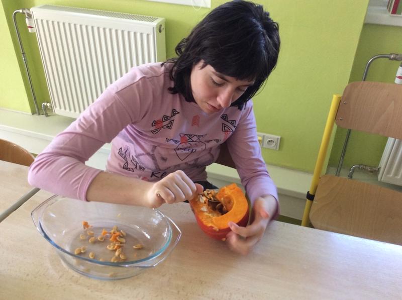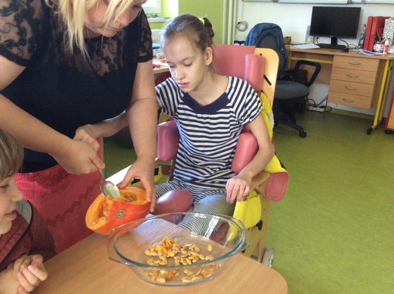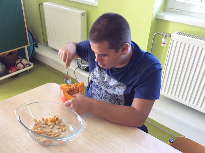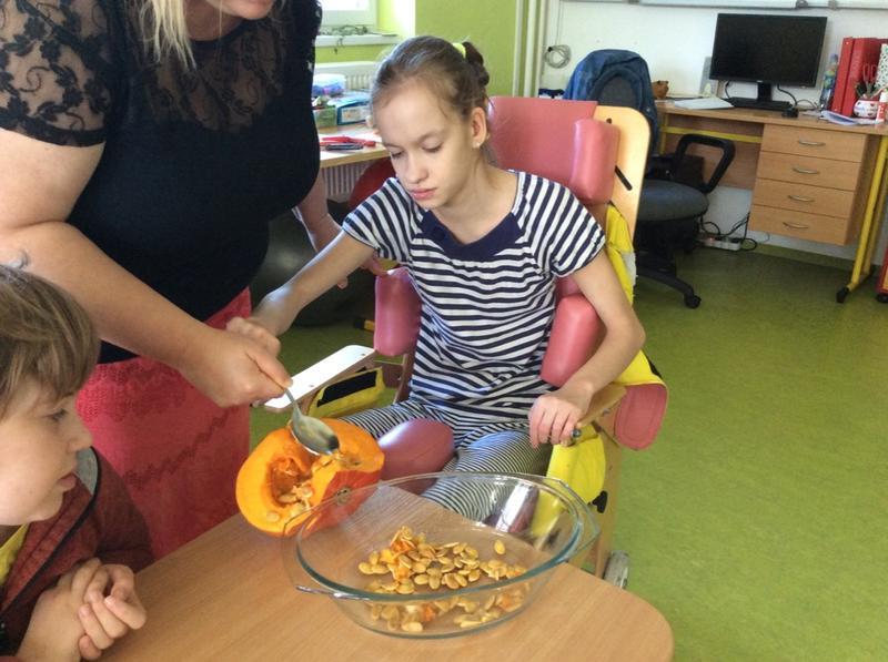 Krásné počasí nás motivovalo k výtvarnému tvoření i k přípravě jednoduchých pokrmů z plodin, které můžeme v tomto období na zahrádce ještě najít. Hrozny, ostružiny, bylinky, dýně a brambory jsme využili různými způsoby – posloužily jako vzor k tisku a poté k výzdobě naší třídy, k výrobě bramborových spirálek i dýňové polévky.