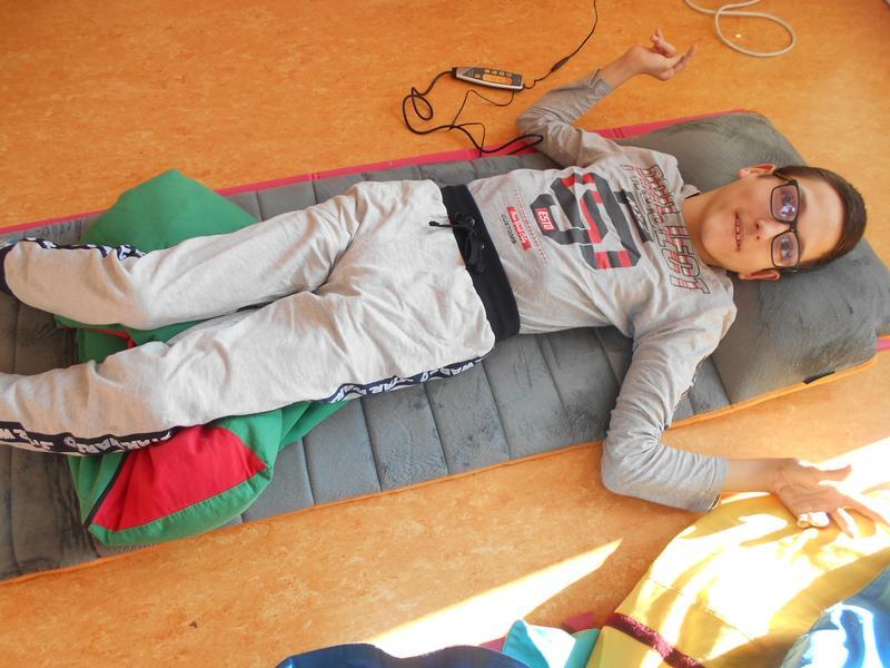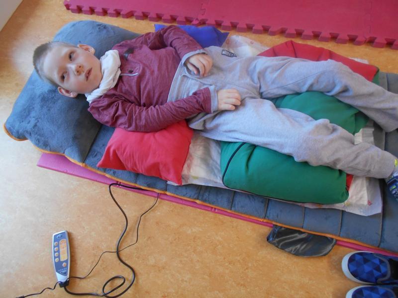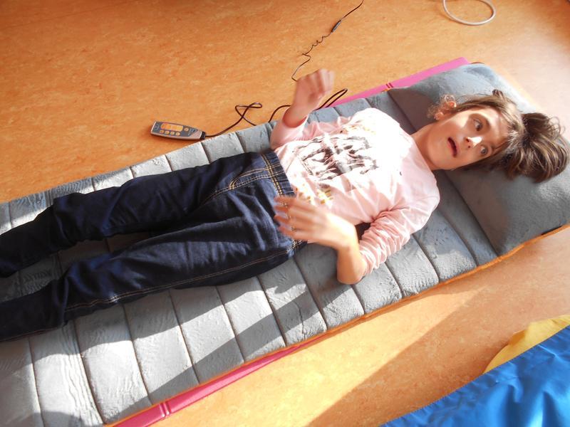 Během dne žáci využívají vibrační masážní podložku a křeslo k relaxačním chvilkám.