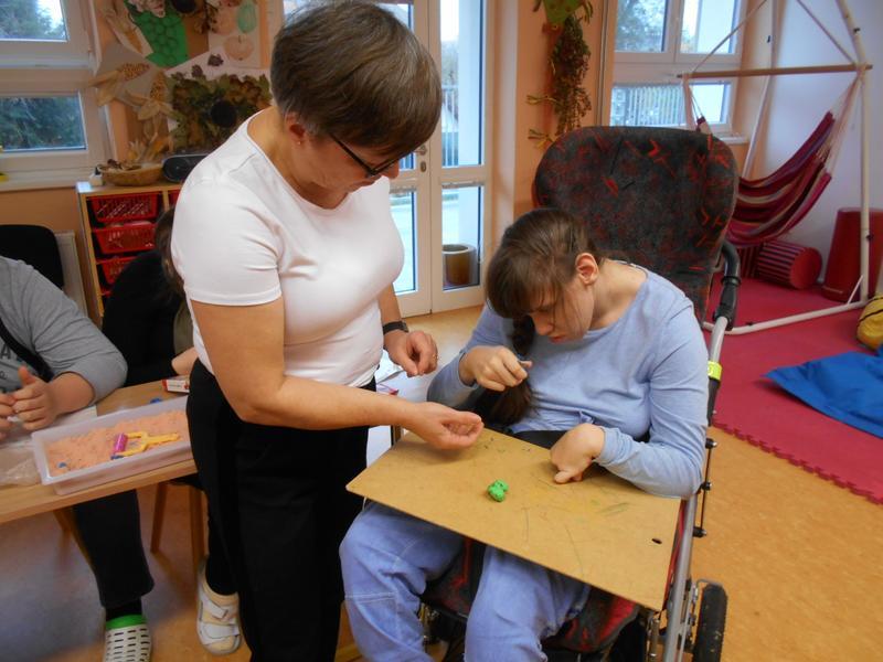 Na podzim jsme pracovali mimo jiné s keramickou hlínou, modelínou, pískem a vyrobili sovičky. Taky jsme rozlišovali různé zvuky, ale ne všechny byly snadno k rozeznání.
