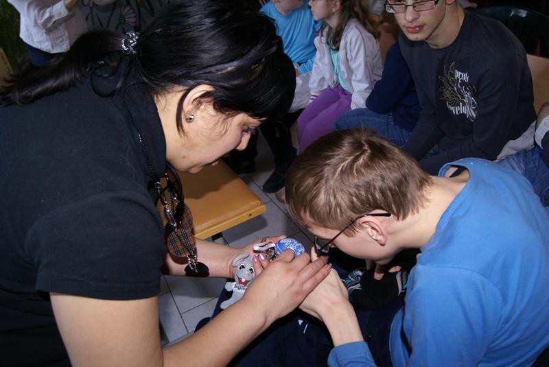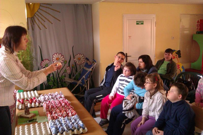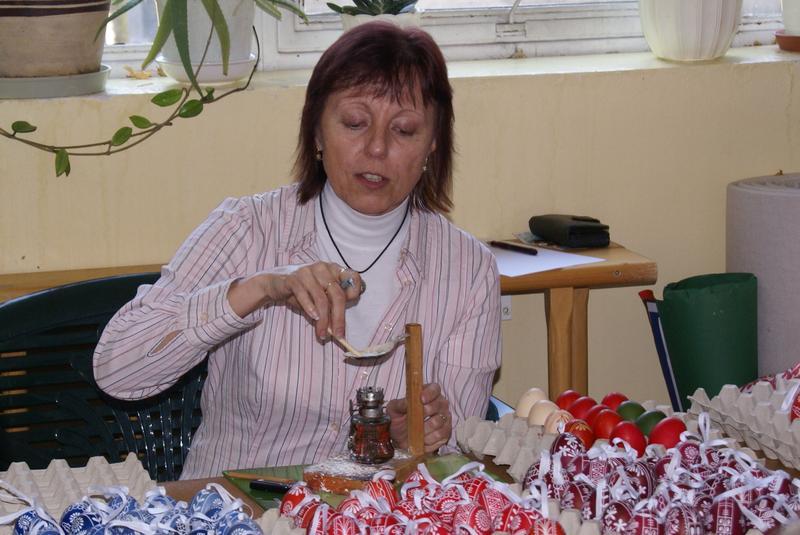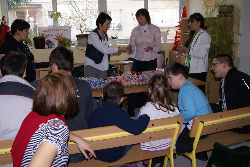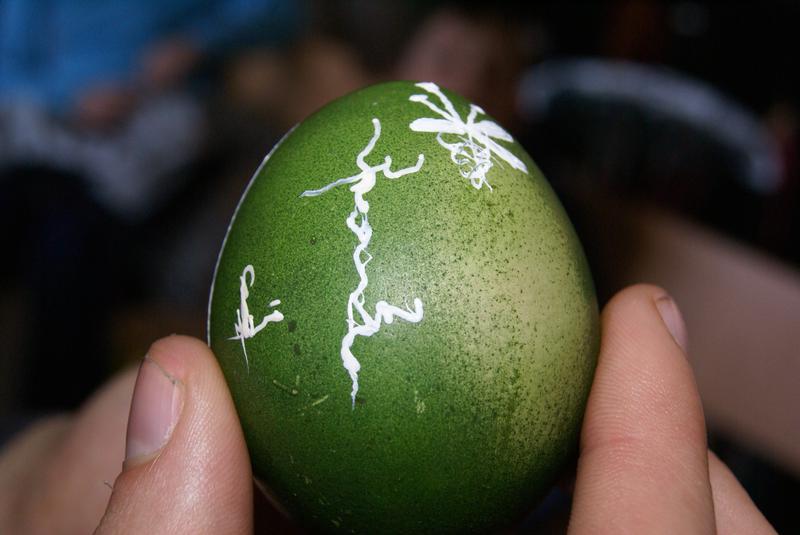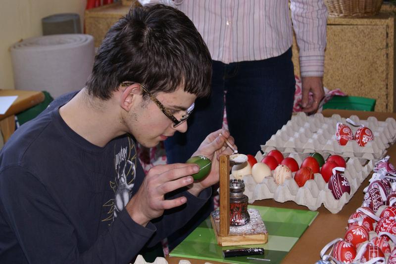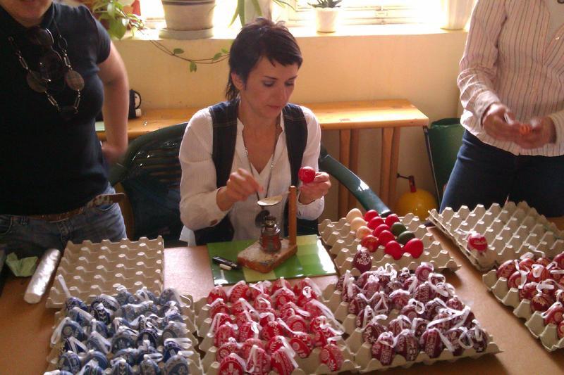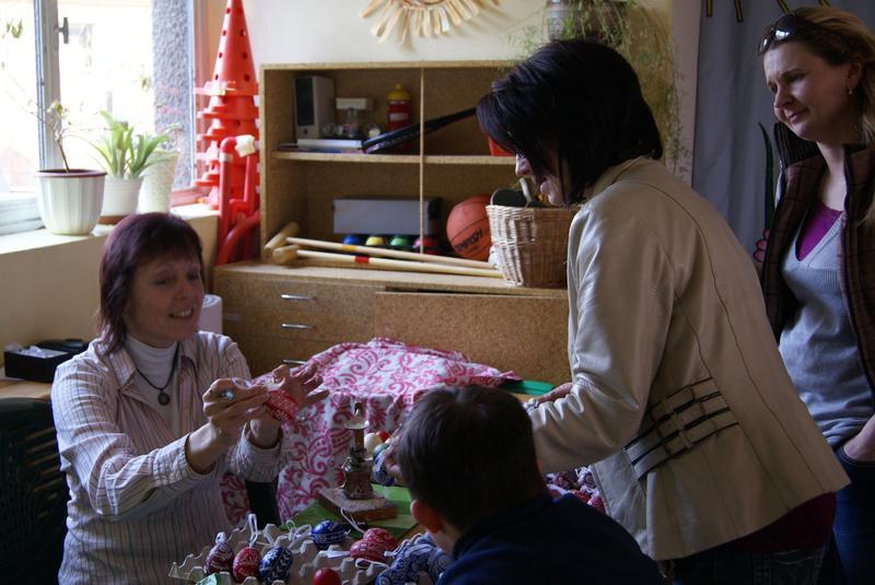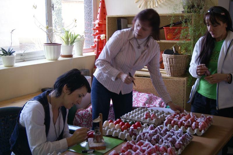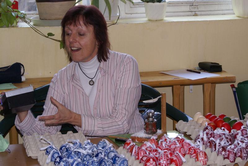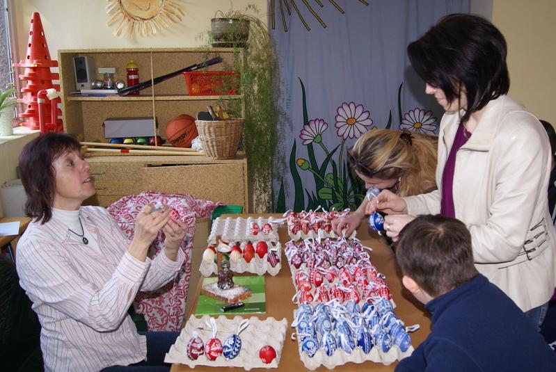 Dnešní družinové odpoledne bylo věnováno tradičnímu zdobení velikonočních kraslic. Do školy ale nepřišel žádný host - jako malérečka se představila paní vychovatelka Slobodanka Kolajová a seznámila nás s přípravou skořápky, barvením a nanášením vosku na kraslici. Její kraslice jsou vyzdobeny tradičními slováckými ornamenty a na památku nám na kraslice napsala i věnování.