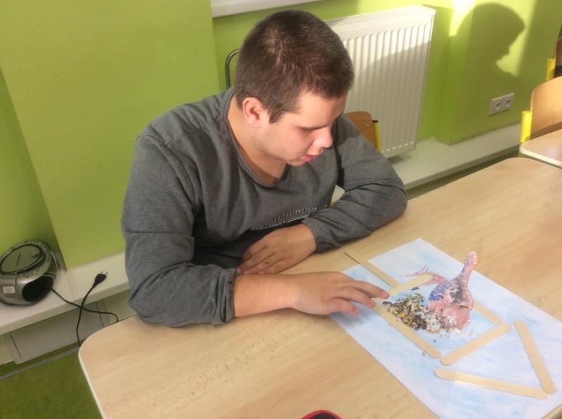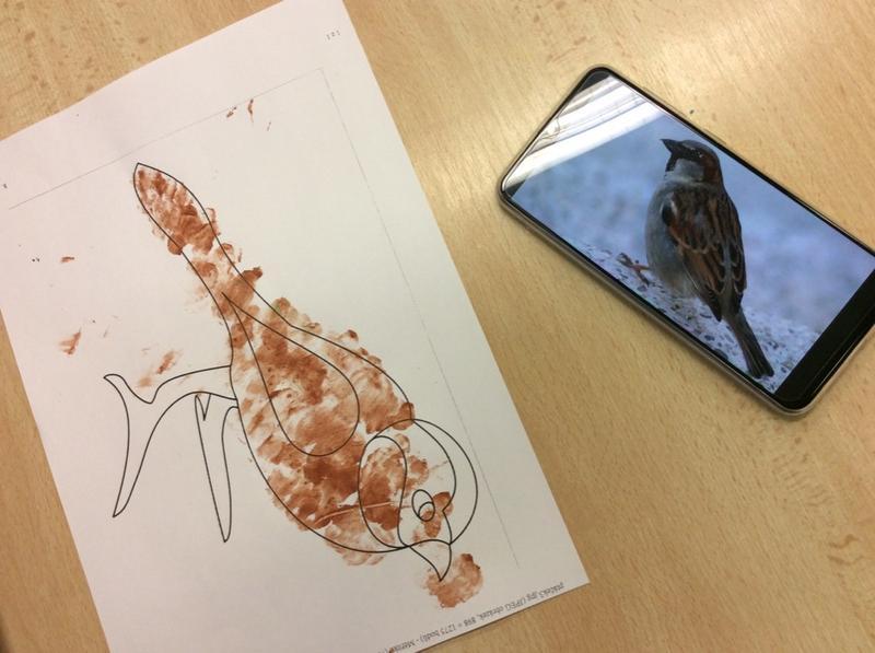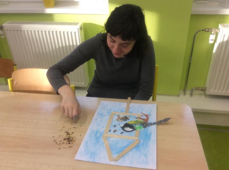 Dílo se nám poměrně zdařilo a povídání o ptácích jsme doplnili výtvarnými aktivitami - prací s prstovými barvami a s přírodními materiály.