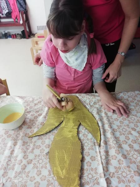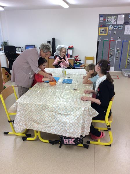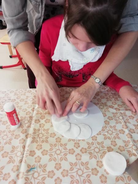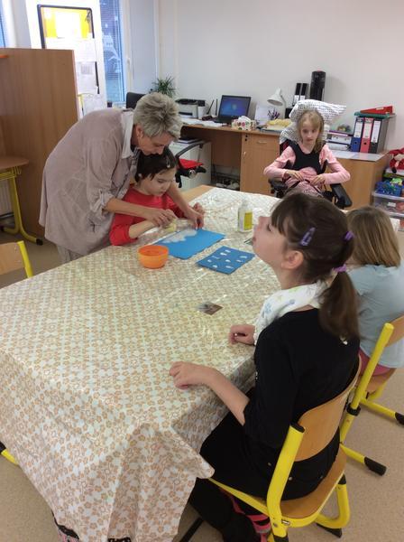 Žáci pracovali s netradičním materiálem, ze kterého vyráběli sněhuláky a sněhové vločky. Jako dekoraci na blížící se bál malovali a tupovali plameny na kartón.