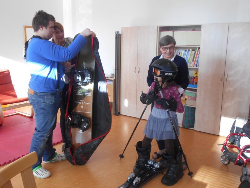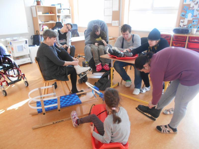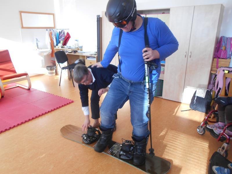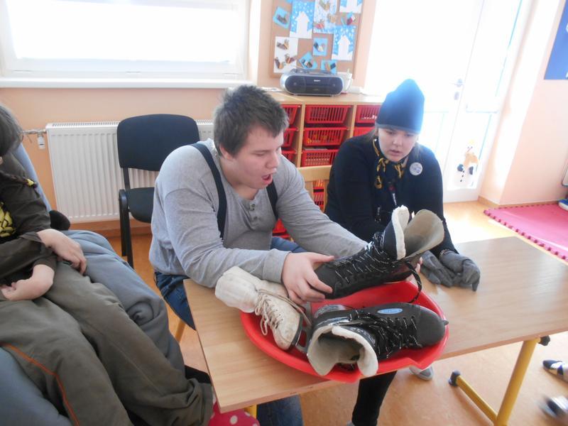 Vyzkoušeli jsme si lyžáky, snowboardové boty, brusle, sezení na saních a bobech. Dokonce jsme se i koulovali.