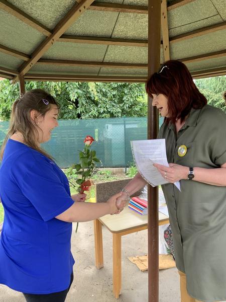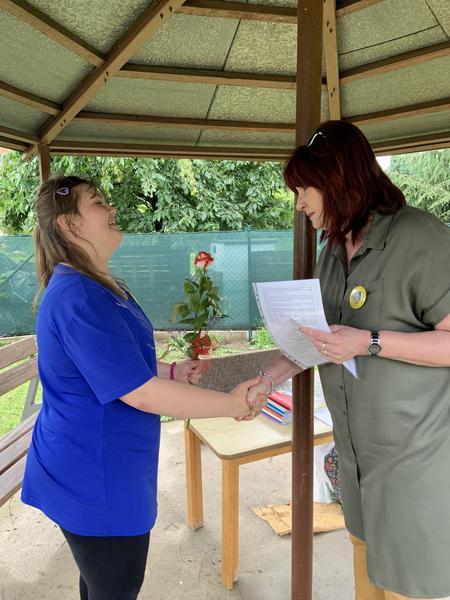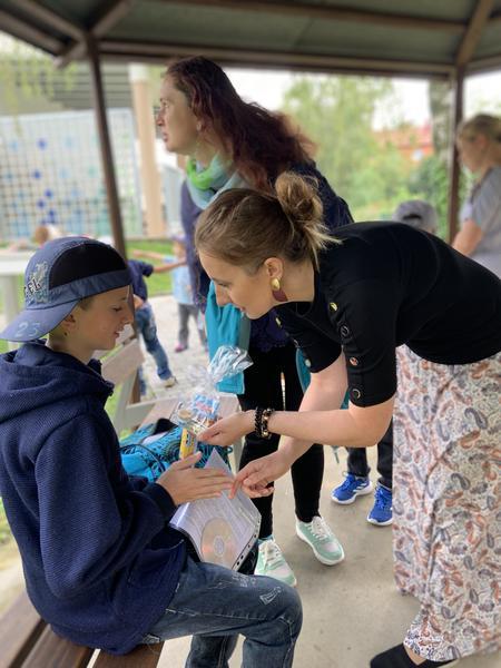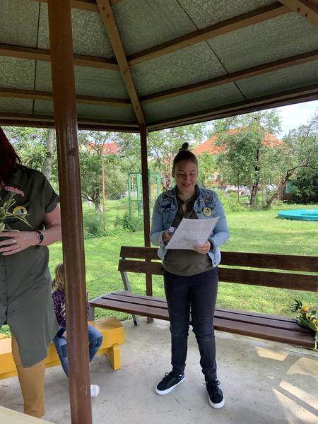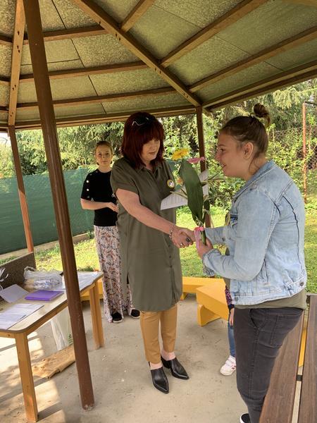 Krátké zhodnocení práce a činností za druhé pololetí školního roku 2019/2020, předání Vysvědčení a malých dárečků na zahradě školy v altánku....