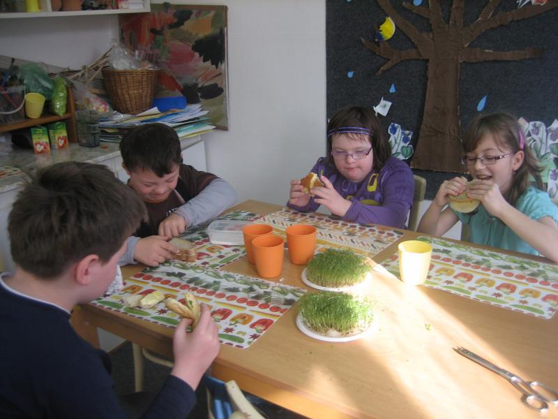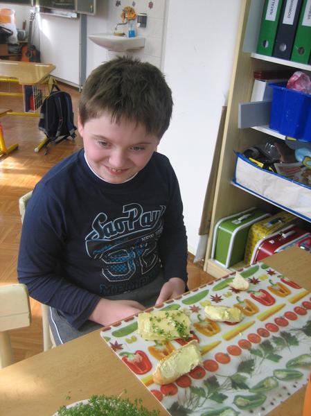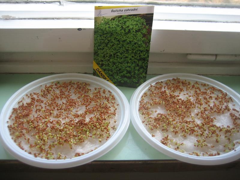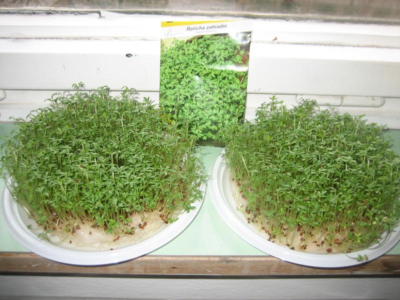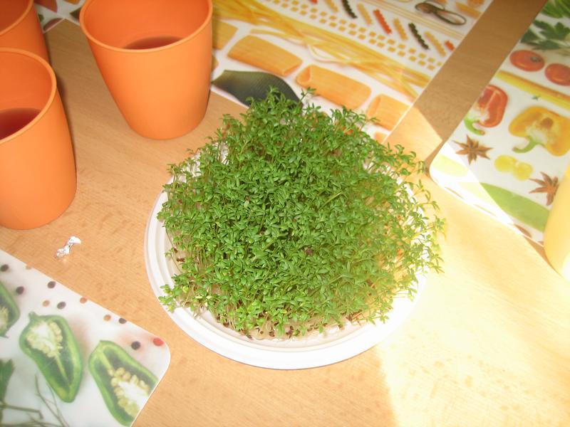 V minulém týdnu jsme si "nasadili" řeřichu, která nám krásně vyrostla.... Tak a už jsme si ji mohli přidávat ke svačině....