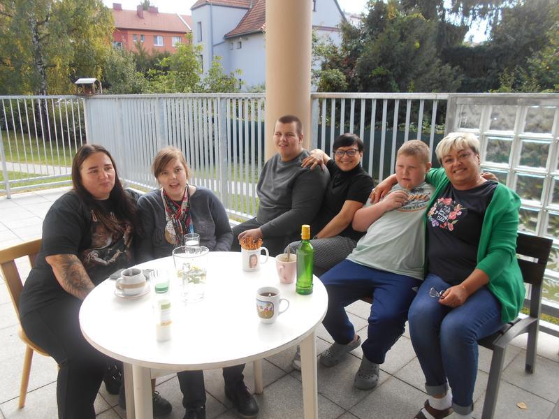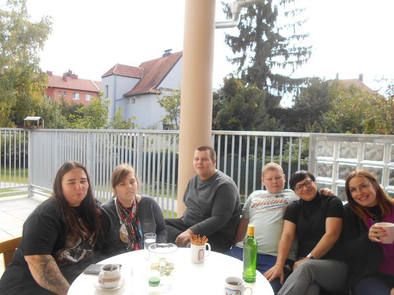 Velmi nás potěšila návštěva naší bývalé spolužačky Evy s maminkou, se kterými jsme si povídali na terase školy.