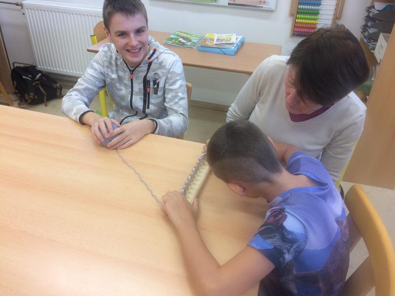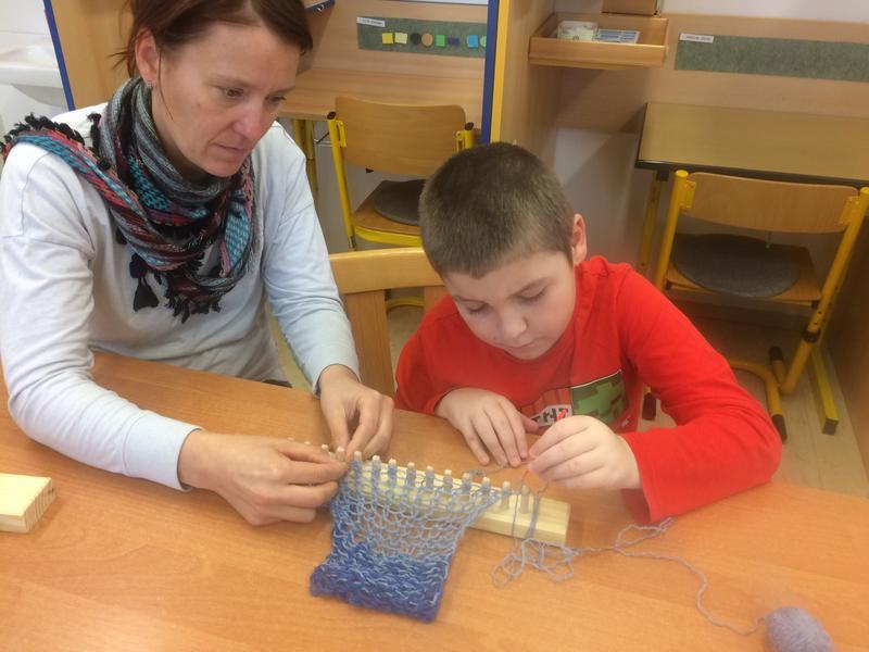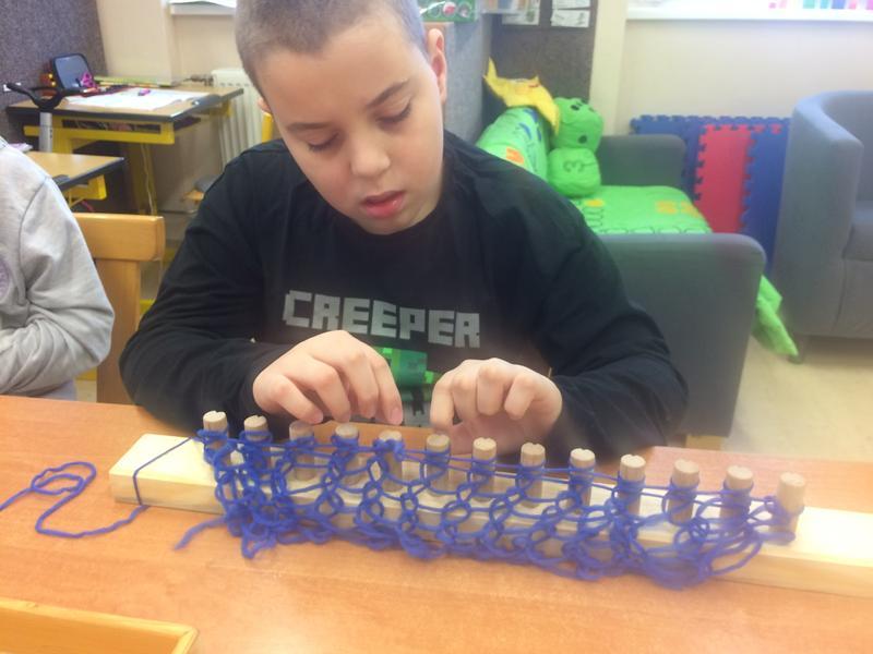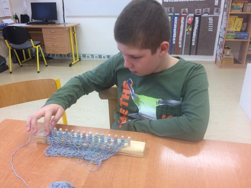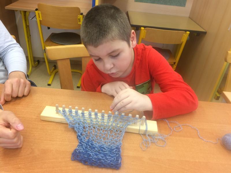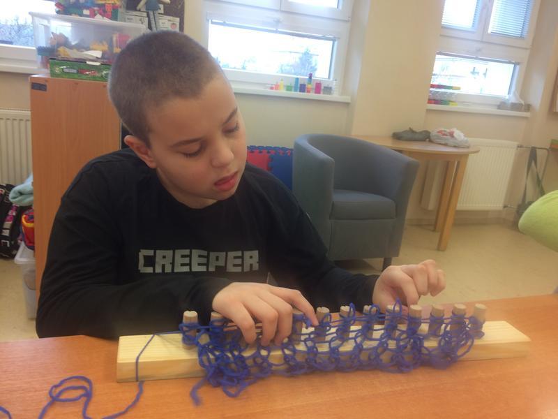 Světový den porozumění autismu s podtitulem „na modré vlně“ je sice ještě daleko, ale už teď se na něj připravujeme. Třeba tím, že pleteme nekonečnou šálu. S jehlicemi je to trochu složitější, tak nám náš zručný školník pan Hána vyrobil stavy (inspirované https://m.youtube.com/watch?v=4TOC9QIF7wA) a pleteme bez nich.