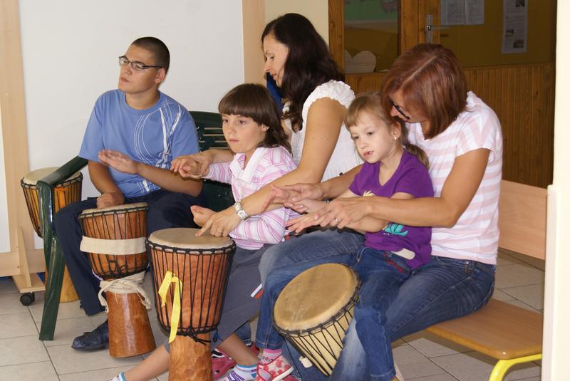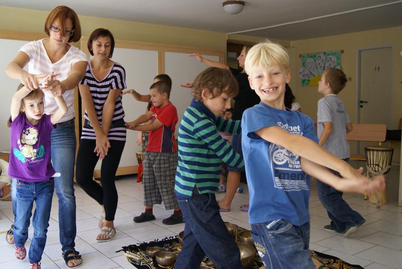 Ve čtvrtek 7. 9. 2012 proběhly první terapeutické hodiny. Za dva týdny 20. 9. zveme rodiče, ať se přijdou podívat, jak hodina muzikoterapie probíhá. Začínáme v 9,30!