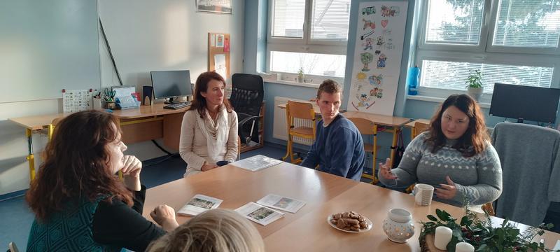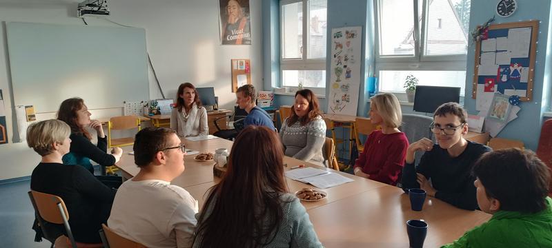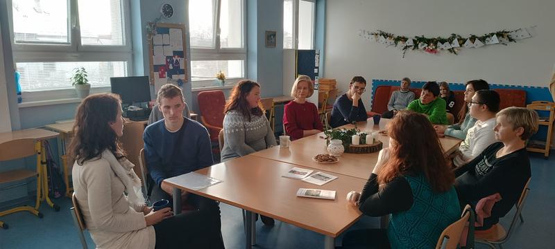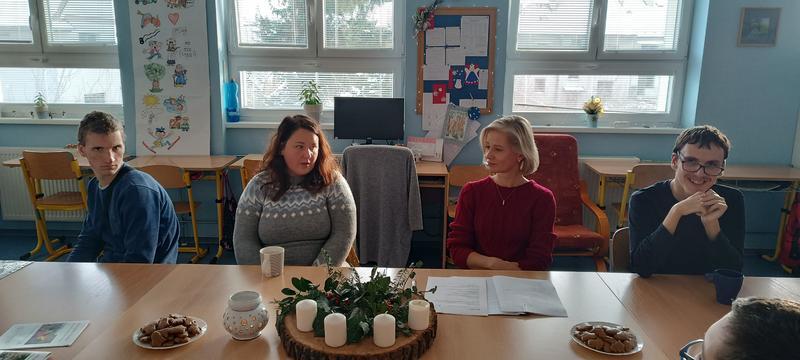 Se žáky a rodiči besedovali paní Mgr. Marcela Bartošíková ze speciálně pedagogického centra Zlín Středová a paní Bc. Radka Marášková DiS., vedoucí služby Podpora samostatného bydlení Diakonie ČCE, střediska Cesta v Uherském Hradišti. O své zkušenosti s výběrem vhodné školy se s námi ráda podělila také paní Mgr. Blahová, maminka absolventa naší školy Filipa, který byl taktéž hostem této besedy.