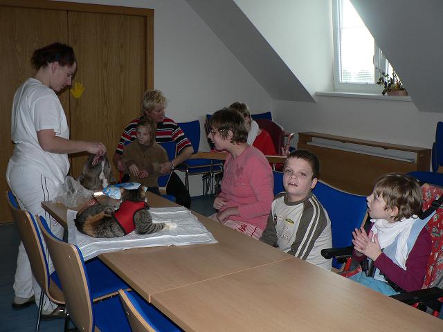I v letošním školním roce nás pravidelně navštěvuje paní Supová se svými zvířaty, mezi kterými je nový pes Merlin.