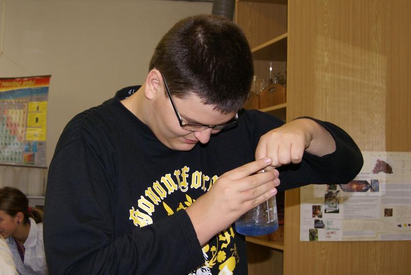 V pondělí 5. listopadu 2012 se žáci IV. třídy opět vypravili na výuku chemie za sekundány z hradišťského gymnázia. Po příjemném uvítání se všichni společně pustili do práce a naplno si užívali zajímavých pokusů.