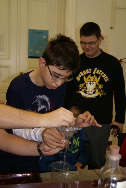 V prvním pokusu se smícháním kapalin vytvořila emulze, kterou žáci dělící nálevkou opět rozdělili na jednotlivé složky. Druhý pokus demonstroval rozdělení směsi barviv prostřednictvím papírové chromatografie.