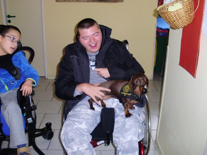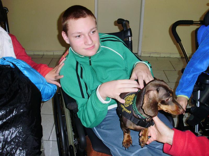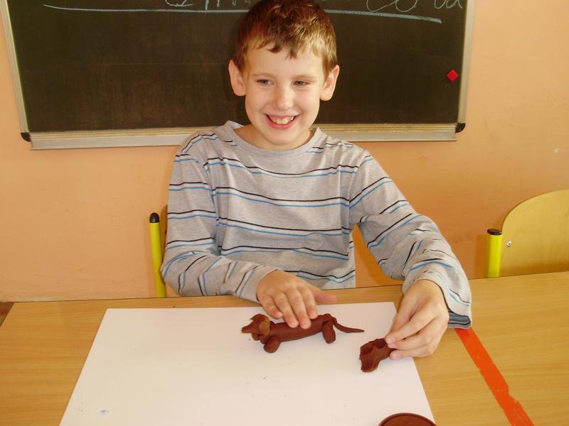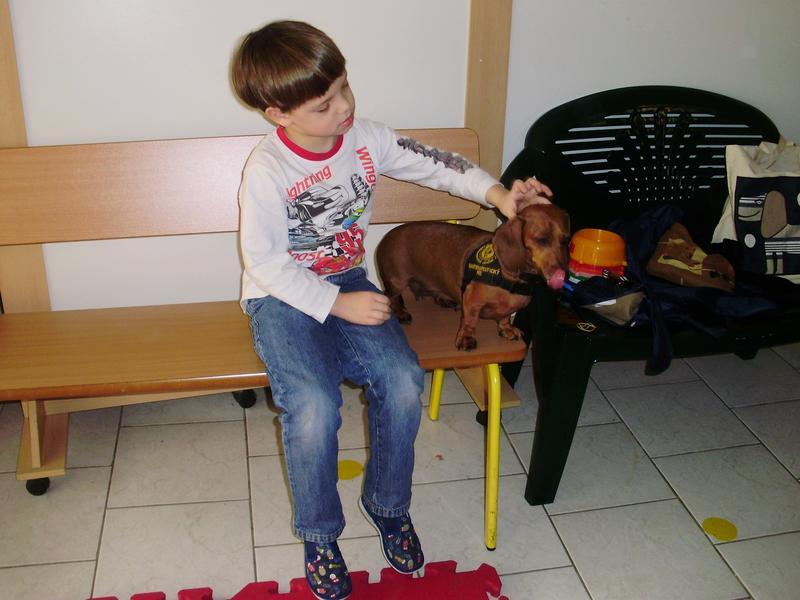 Dnes, poprvé v tomto školním roce, jsme se učili a bavili se čtyřmi pejsky - jezevčíky.