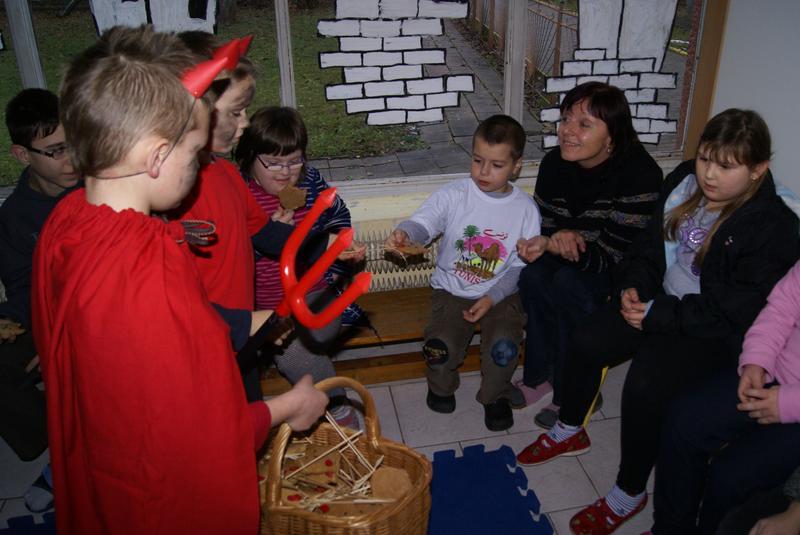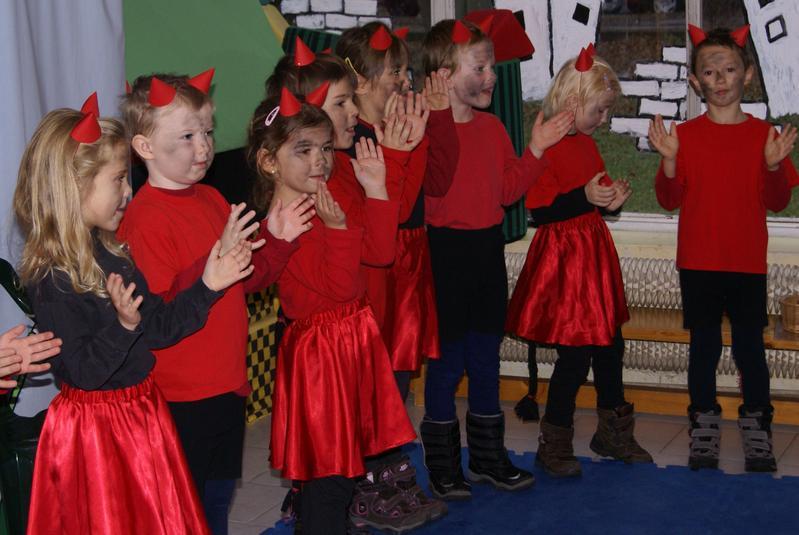 Recitování básniček, rytmizace říkadel, zpěv a tanec vystupujících se nám velmi líbil. A ještě každý z nás dostal malý dárek - perníkového čertíka, kterého kamaradi spolu se svými paní učitelkami upekli a ozdobili.