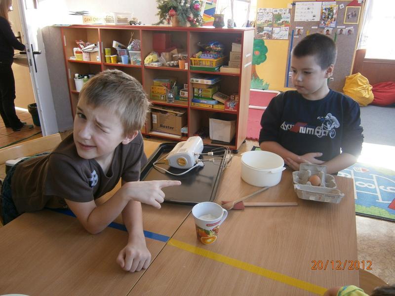 Cukrářské umění si oprášili kluci z páté třídy při přípravě dobrot pro maminky.