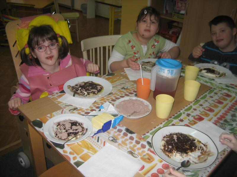Pohádku jsme si četli, vyrobili jsme si "krupicové hrníčky" v rámci pracovních činností, pohádku jsme poslouchali v podání paní Jiřiny Bohdalové, vyhledali jsme si pohádku na internetu a také jsme si krupicovou kaši uvařili na svačinku podle receptu z pohádkové kuchařky ... Byla s kakaem a moc dobrá...