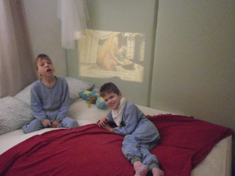 Paní učitelka Zemánková nám ve čtvrtek přinesla promítačku filmů ze svých dětských let (na ruční pohon). Překvapivě původní žárovka značky Edison stále svítí. Krásné ilustrace i text pohádky O Zlatovlásce se dětem velmi líbily.