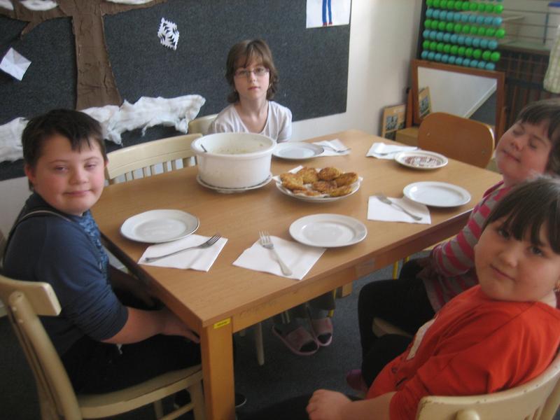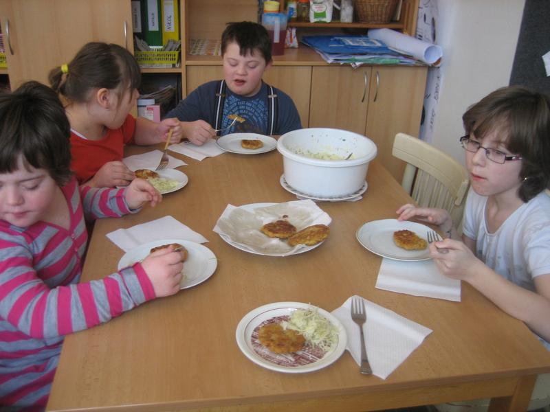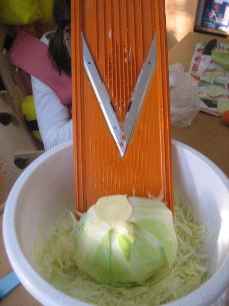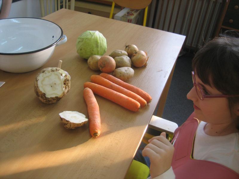 Zeleninu jsme si pojmenovali, očistili, poumývali, předvalili, nastrouhali... Nejdříve jsme si připravili teplý nálev na zelný salát s koprem a pak jsme smíchali všechny přísady pro zeleninové placičky. Potom usmažit, osušit, prostřít stůl a samozdřejmě si popřát DOBROU CHUŤ!