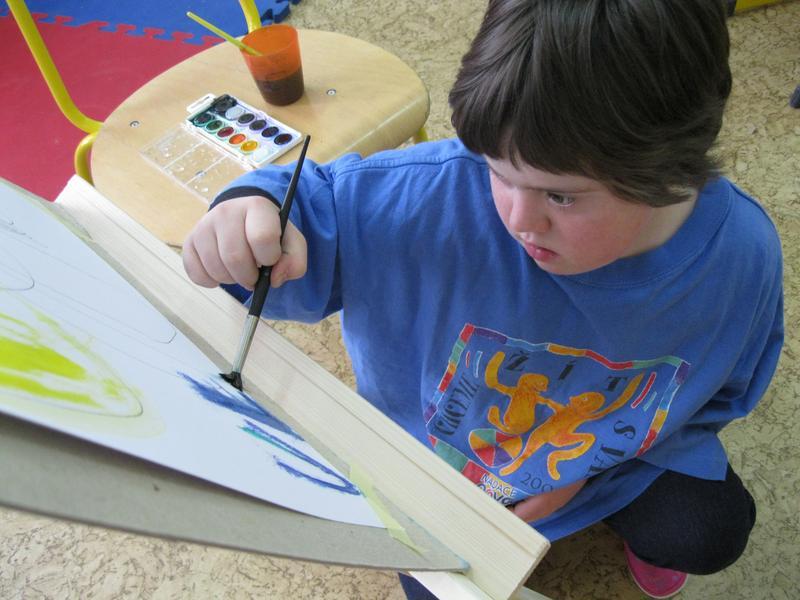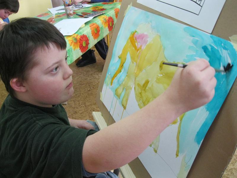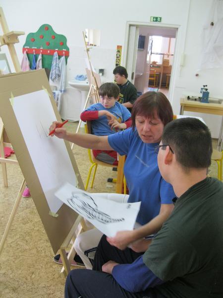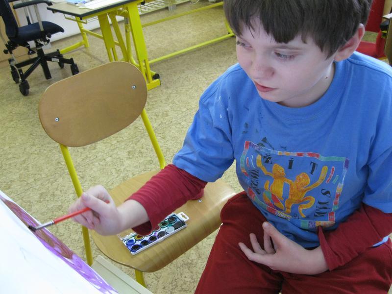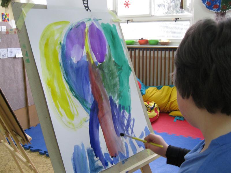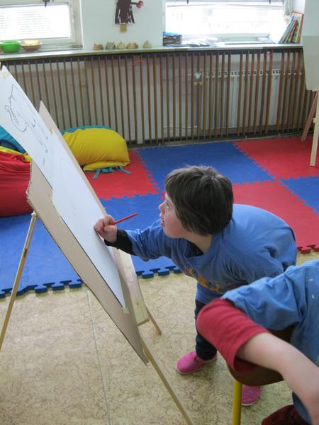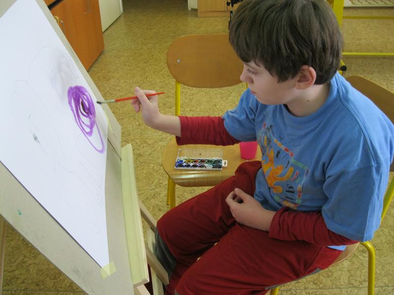 Ve výtvarném kroužku Školního klubu malujeme u stojanů.