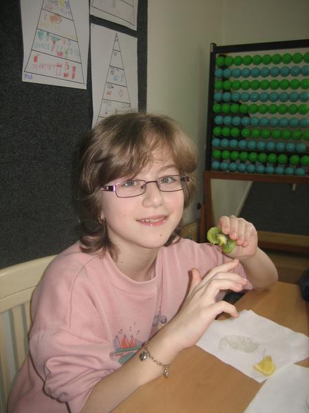 Přinesli jsme si ovoce, ze kterého jsme si připravili zdravý nápoj a ochutnávali jsme různé druhy ovoce, které je nezbytnou součástí naší správné výživy.