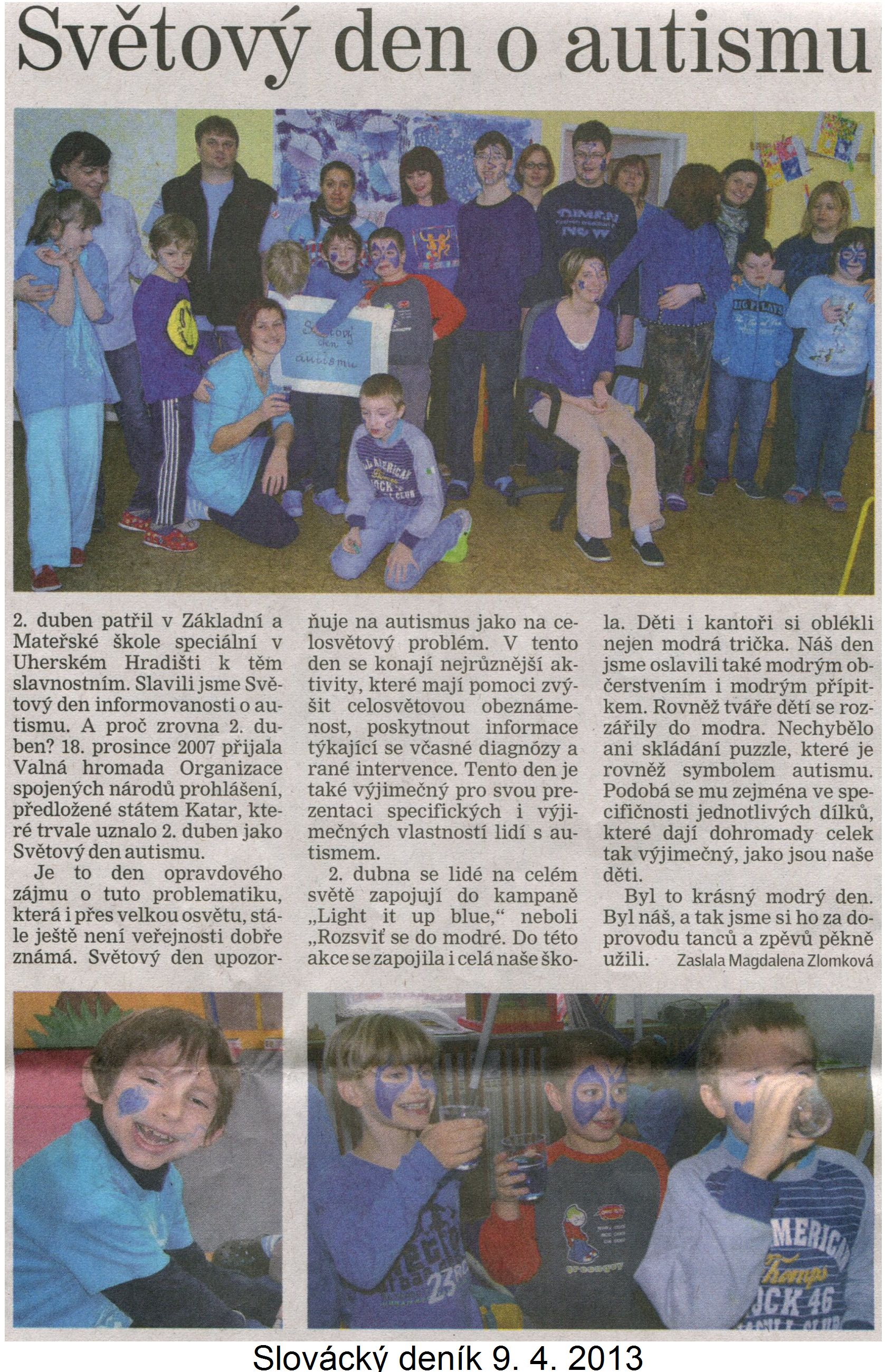 2. duben v naší škole patřil opět oslavám Světového dne informovanosti o autismu. A proč zrovna 2.duben? 18. prosince 2007 přijala Valná hromada Organizace spojených národů prohlášení, předložené státem Katar, které trvale uznalo 2. duben jako Světový den autismu.