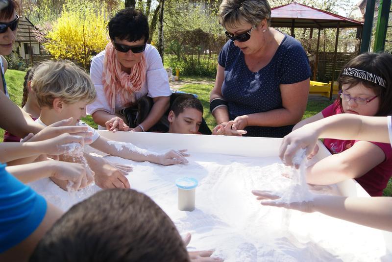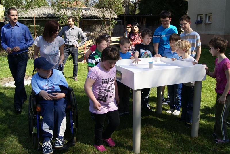 Oba pánové udělali velkou radost žákům školy i dětem z mateřské školky. Předali jim plastové herní prvky, které firma vyrobila na míru dětem s postižením. Krásným dárkem je pískovnice upravená tak, aby ji mohly používat i děti na vozíčku a blátiště vhodné pro hry s vodou a pískovým blátíčkem. Děti nadchl také zahradní domeček. Všechny prvky jsou vyrobeny z velmi kvallitního plastu, který dokáže dlouhodobě odolávat povětrnostním vlivům.