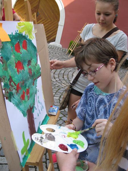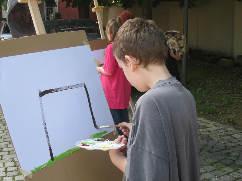 Po loňském malování v zahradě jsme zvolili městské téma a malovali ve venkovních prostorách Galerie Slováckého muzea. Vzniklá výtvárná díla co nejdříve vystavíme ve vestibulu školy...