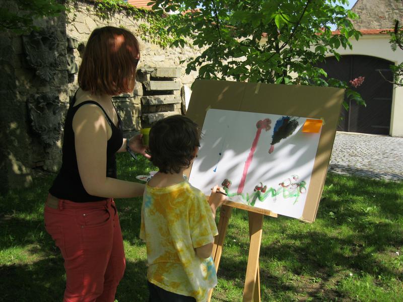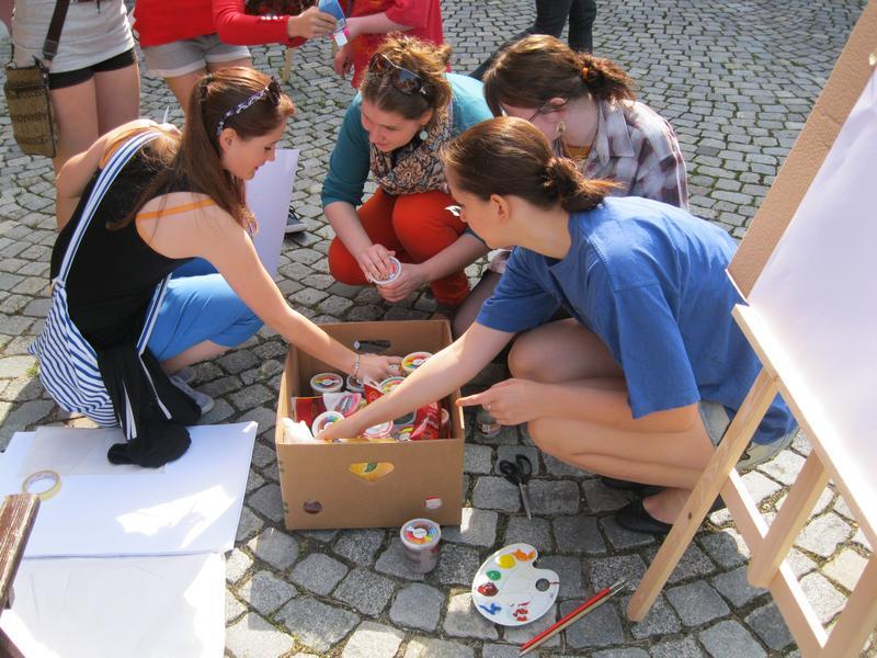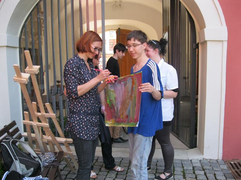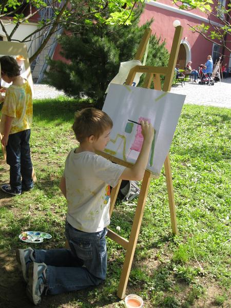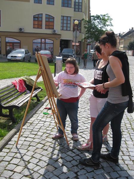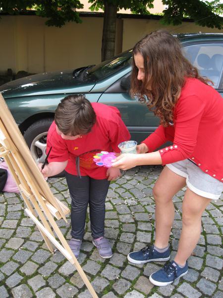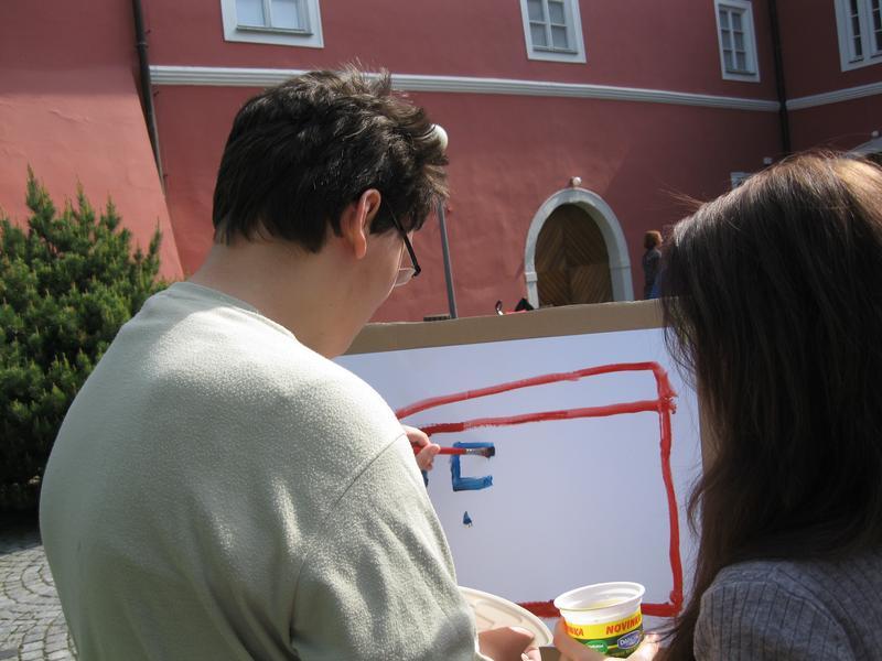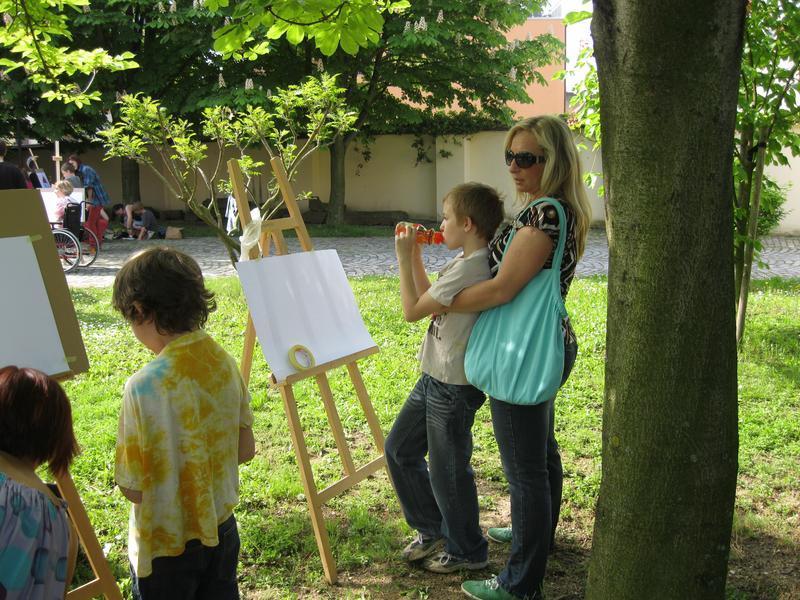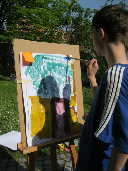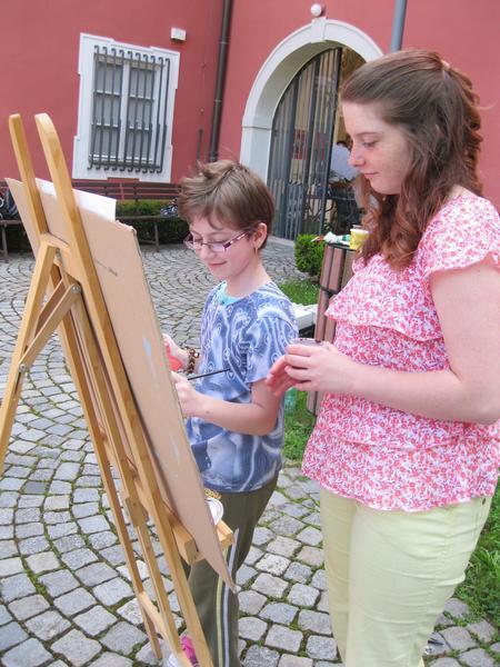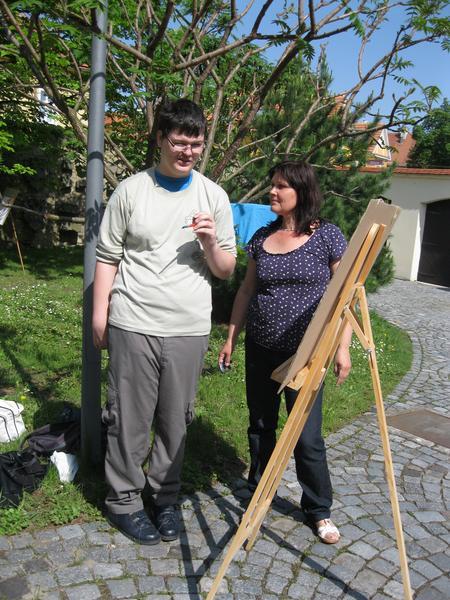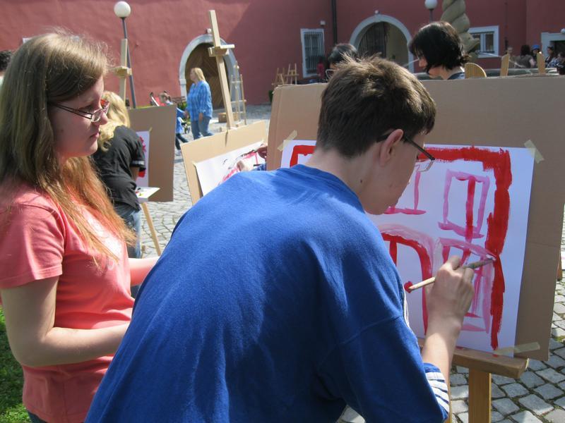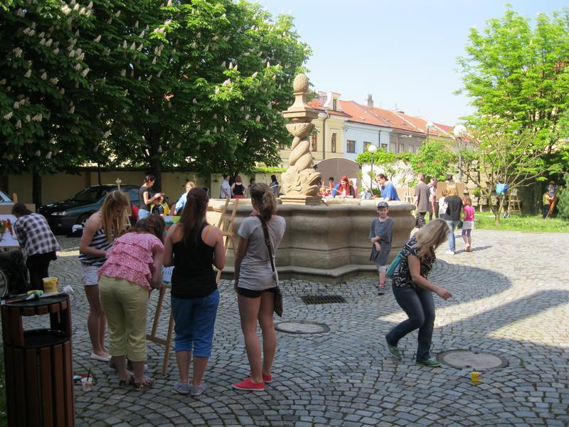 Ve čtvrtek 9. května proběhl druhý ročník "malování v plenéru" ve spolupráci se žáky výtvarného oboru Základní umělecké školy (pod vedením p. Klinkovské) a studenty malby UMPRUM.