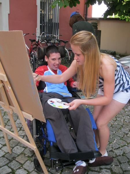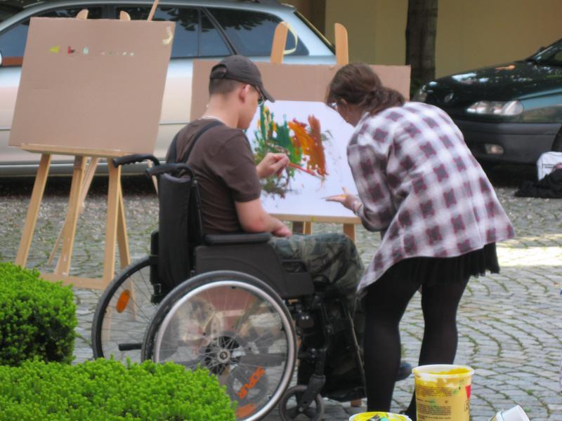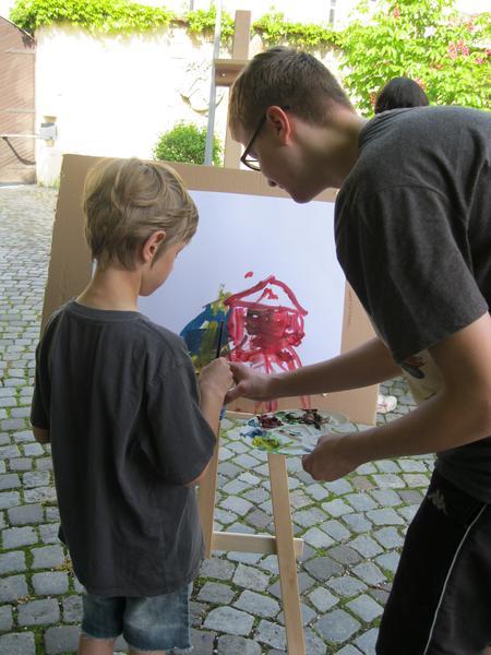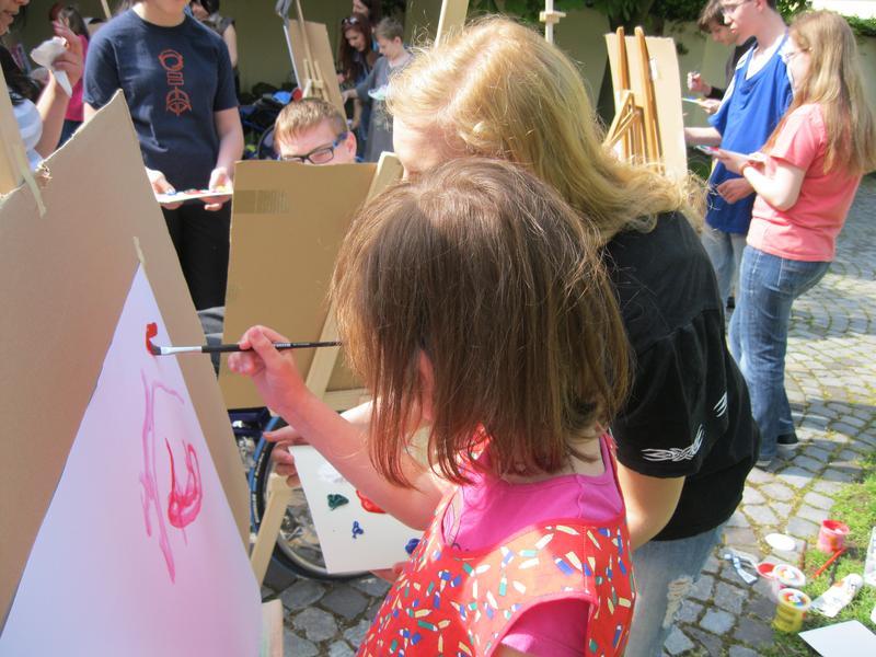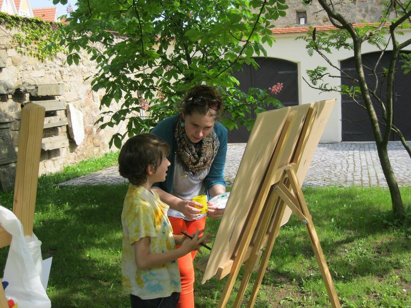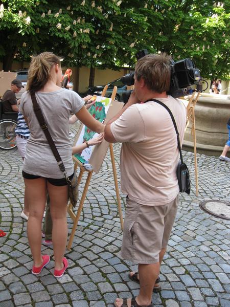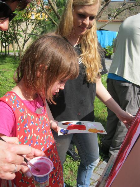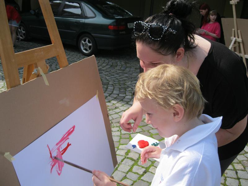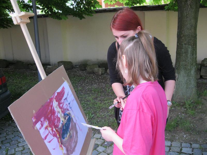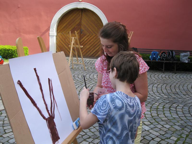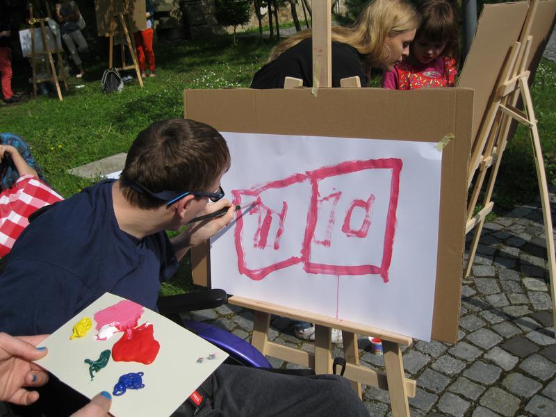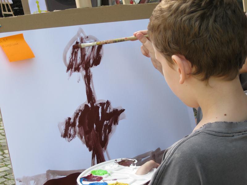 Ve čtvrtek 9. května proběhl druhý ročník "malování v plenéru" ve spolupráci se žáky výtvarného oboru Základní umělecké školy (pod vedením p. Klinkovské) a studenty malby UMPRUM.