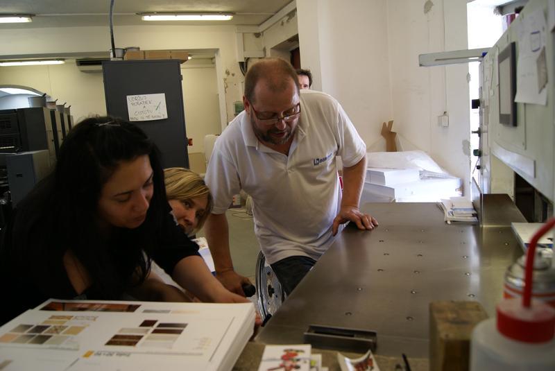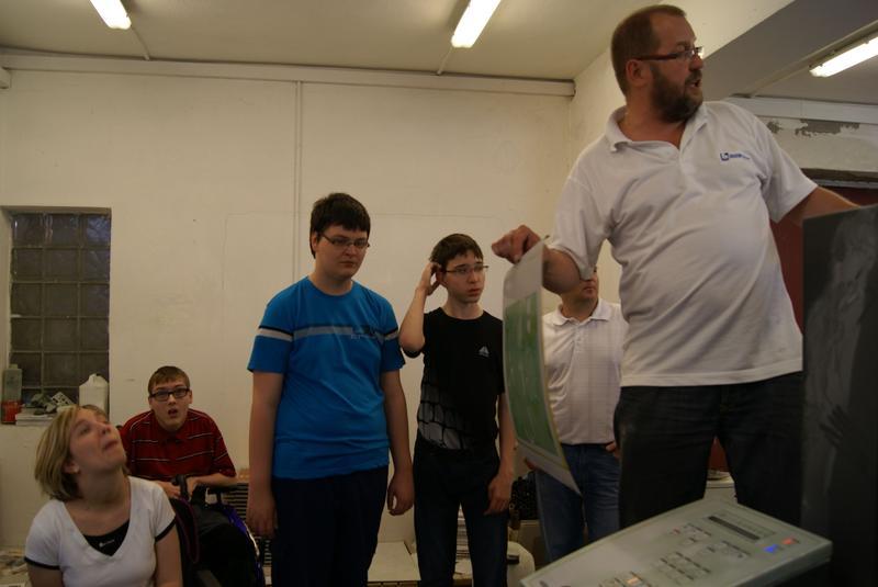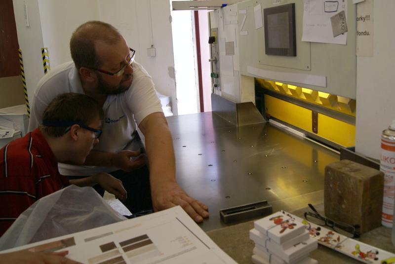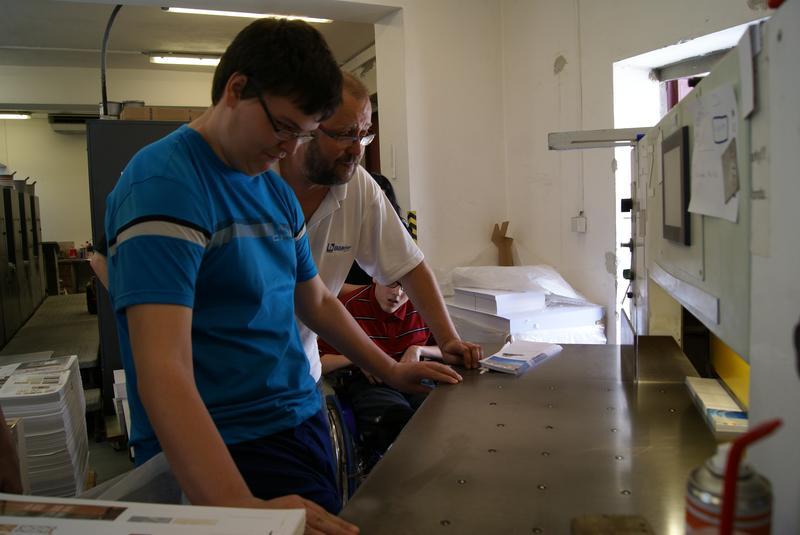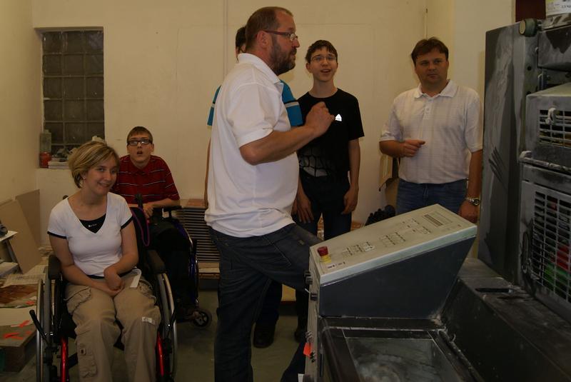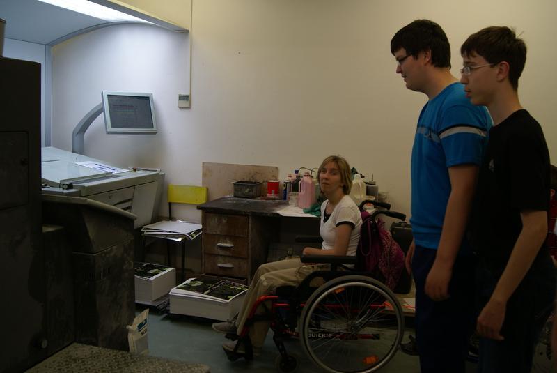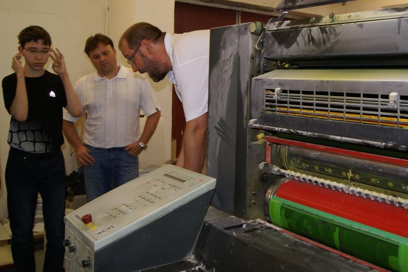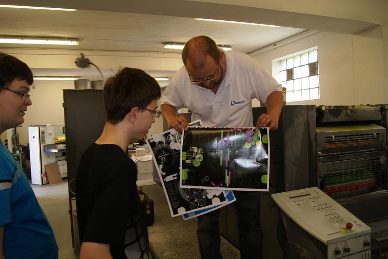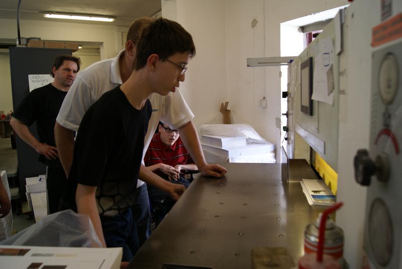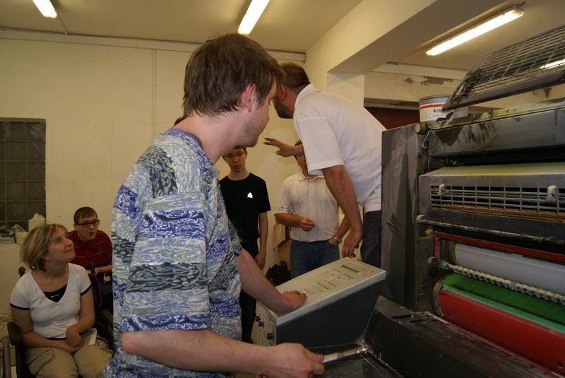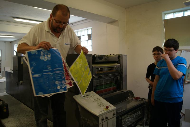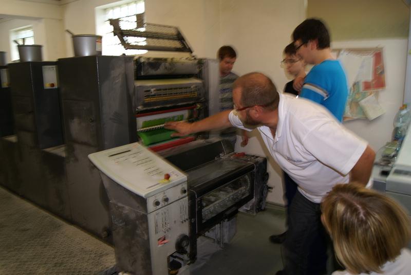 Exkurze začala v DTP studiu, kde se žáci seznámili s prací grafika a přípravou materiálů pro tisk. Pokračovala ve výrobně hliníkových matric pro tisk, v tiskařské hale s ofsetovou tiskárnou a závěrem si žáci vyzkoušeli práci stříhače na automatické stříhačce papíru.