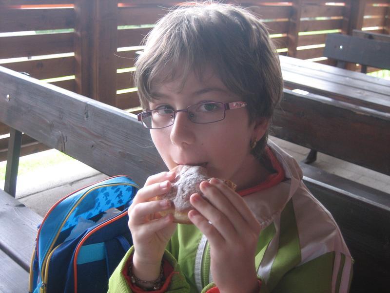 Na svačinu jsme si pochutnali na čerstvých koblížcích. Naše výrobky nám i upekli a přivezli jsme si je do školy!